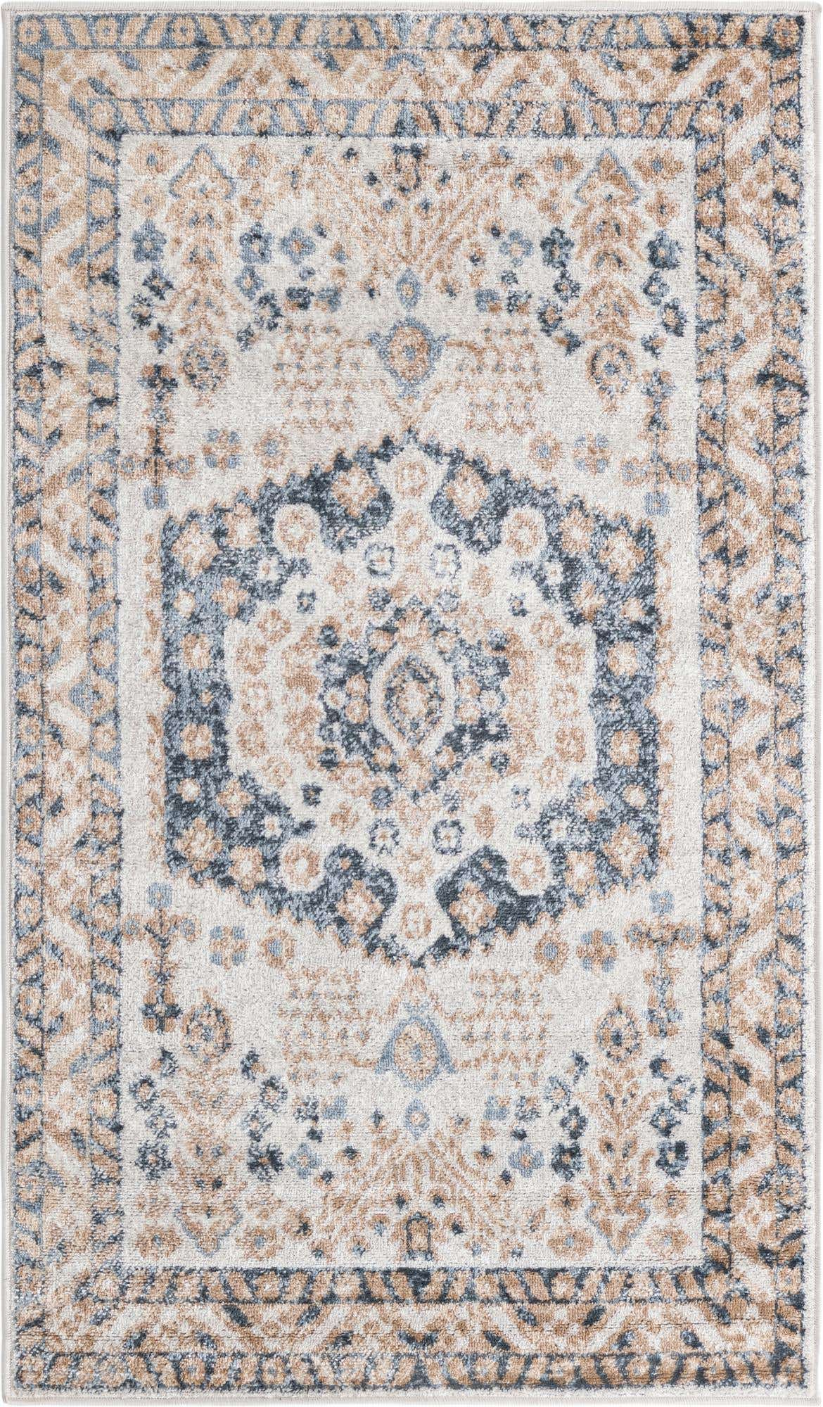 Washable Gray Blue 2' x 3' 1 Renaissance Rectangle Area Rug Easy to Clean Stain Resistant & Durable