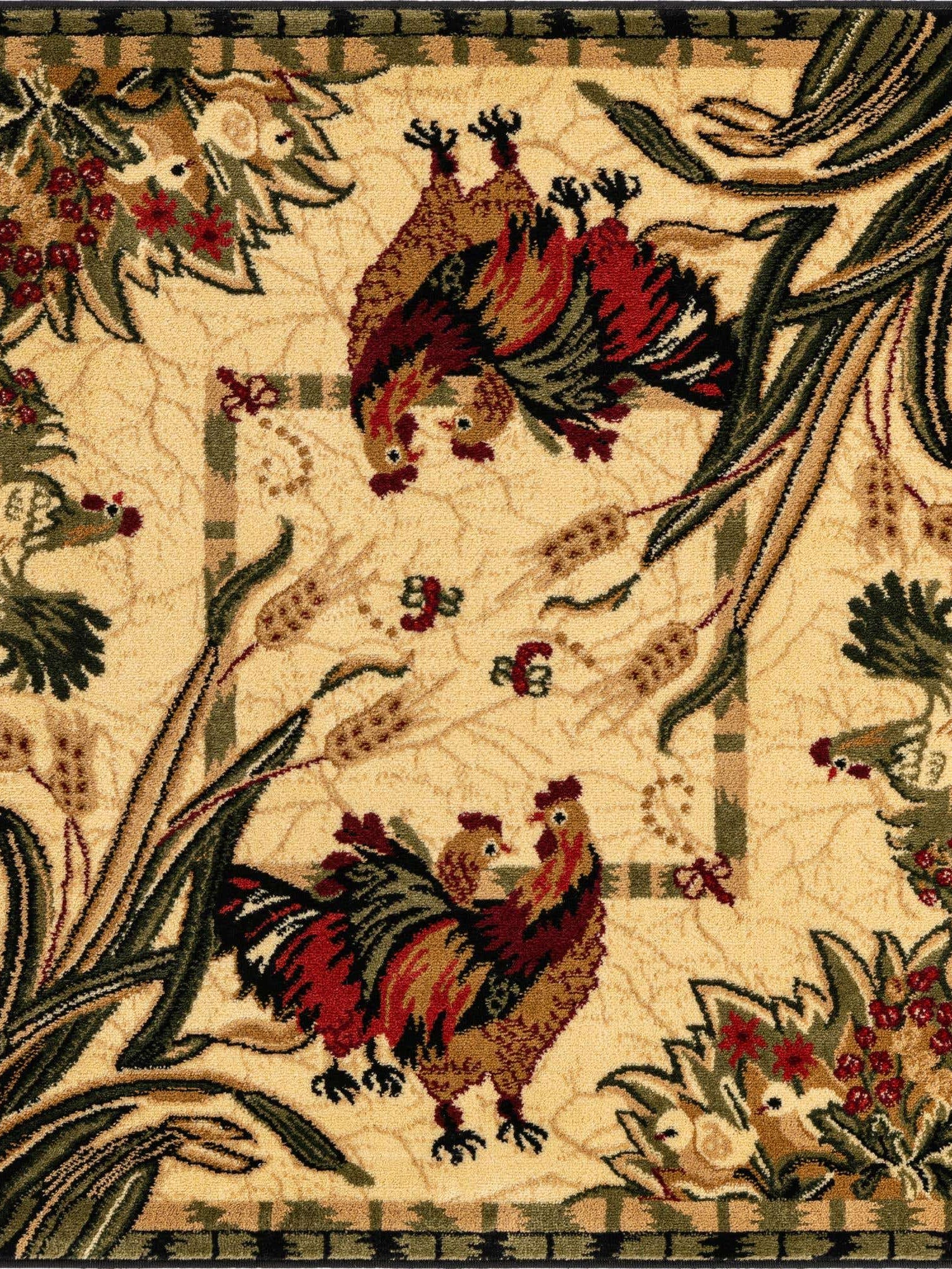 Cream 4' 1 x 4' 1 Barnyard Square Area Rug 100% Polypropylene With Cotton Backing Traditional Cottage Rustic Classical Carpet for Living Office Bedroom Dining Room Easy to Clean Long Lasting & Durable Decor