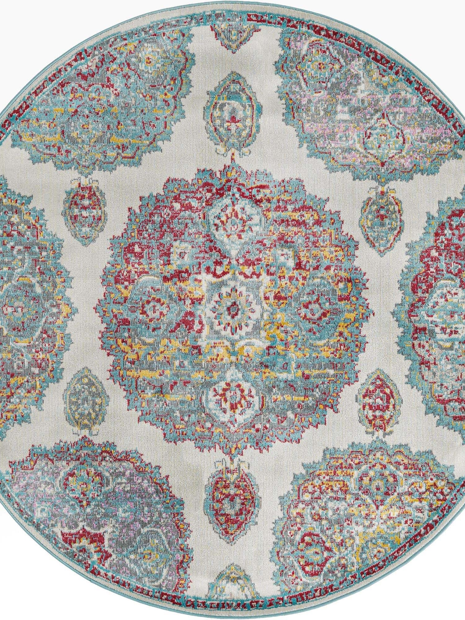 Washable Multicolor 5' x 5' Timeless Round Area Rug Easy to Clean Stain Resistant & Durable