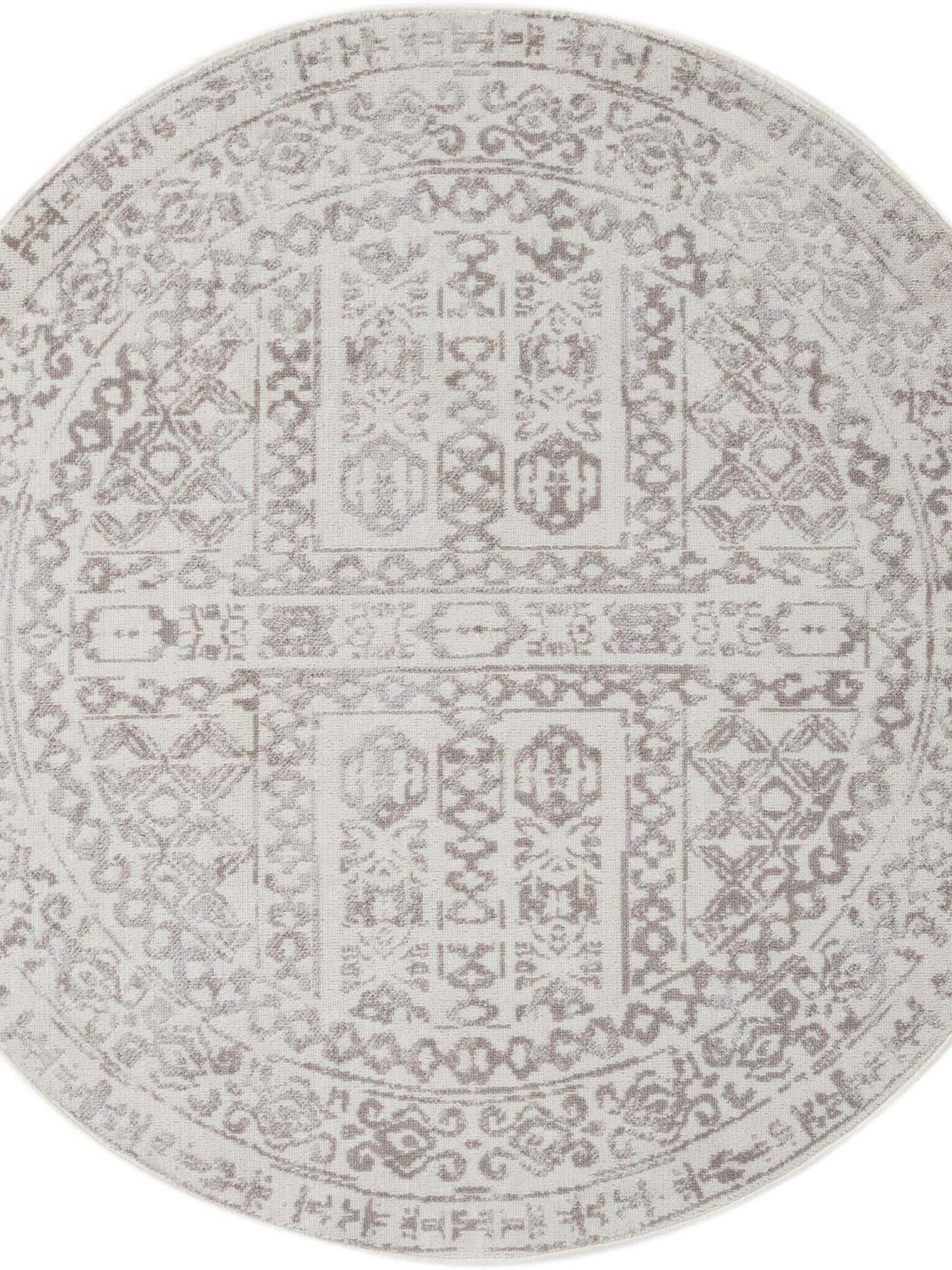 Washable Gray 2' x 2' Timeless Round Area Rug Easy to Clean Stain Resistant & Durable