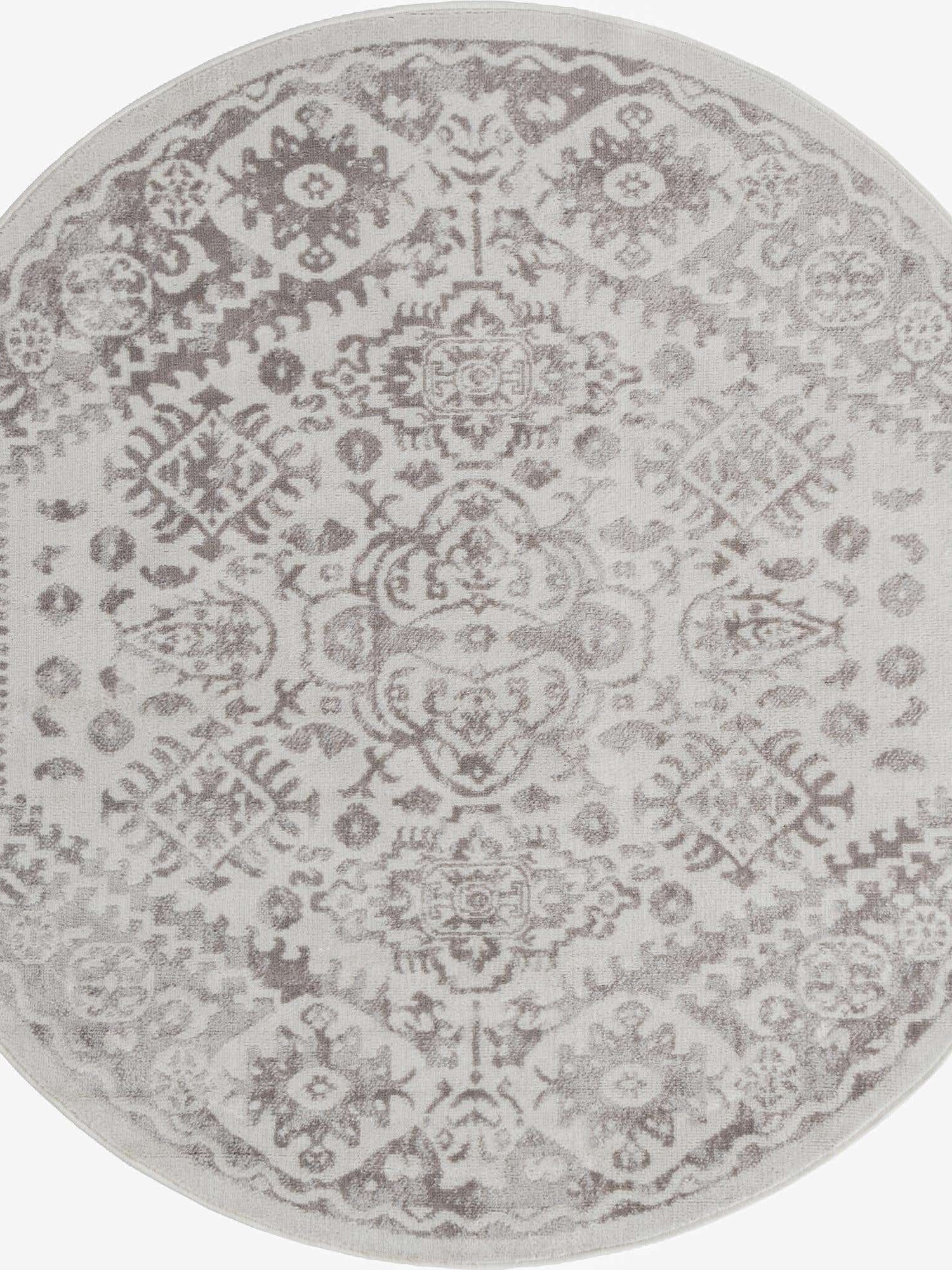 Washable Gray 2' x 2' Timeless Round Area Rug Easy to Clean Stain Resistant & Durable