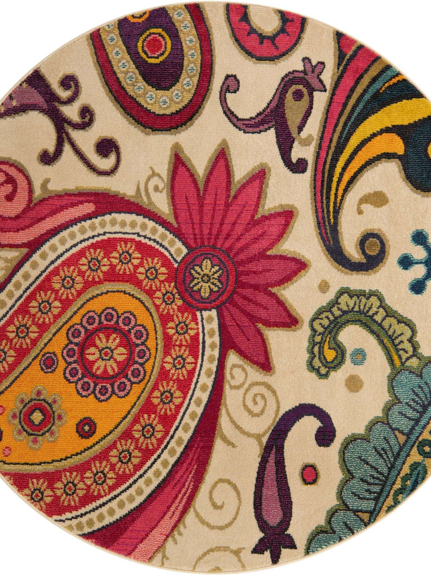 Washable Multicolor 5' x 5' Timeless Round Area Rug Easy to Clean Stain Resistant & Durable