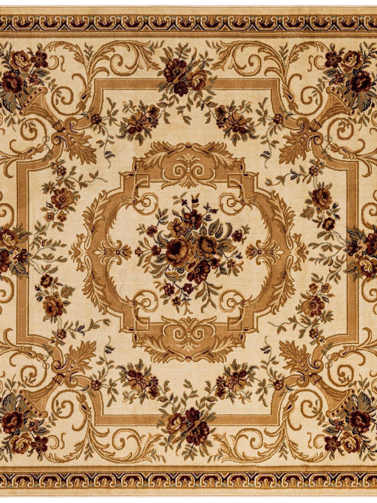 Washable Beige 7' 6 x 7' 6 Timeless Square Area Rug Easy to Clean Stain Resistant & Durable