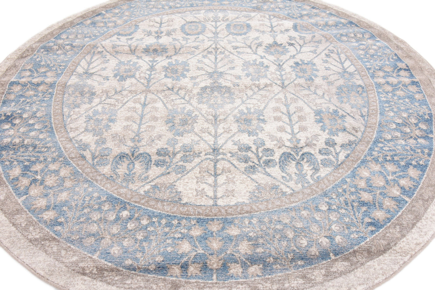 Washable Blue 5' x 5' Timeless Round Area Rug Easy to Clean Stain Resistant & Durable