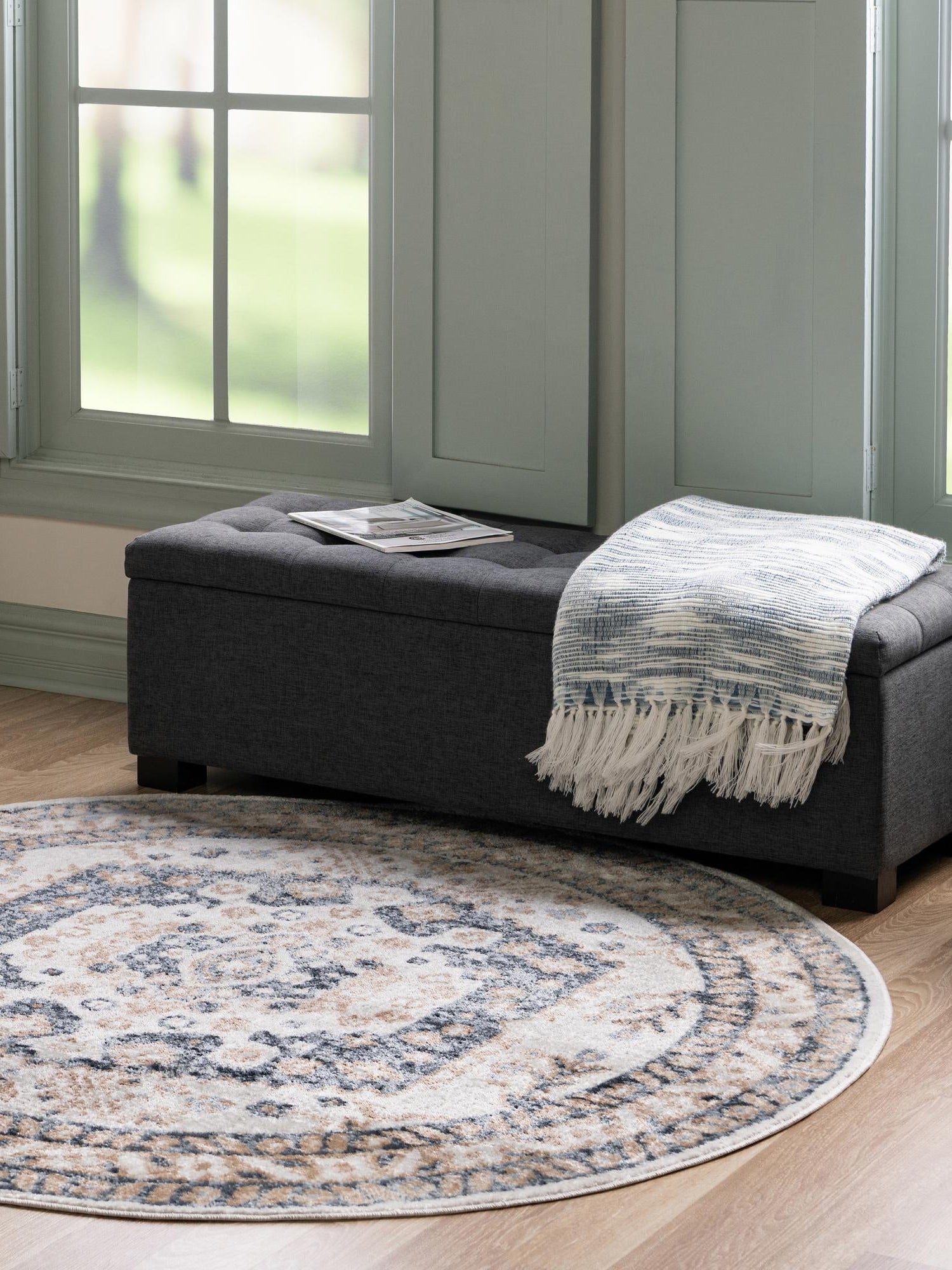 Washable Gray 2' x 2' Timeless Round Area Rug Easy to Clean Stain Resistant & Durable