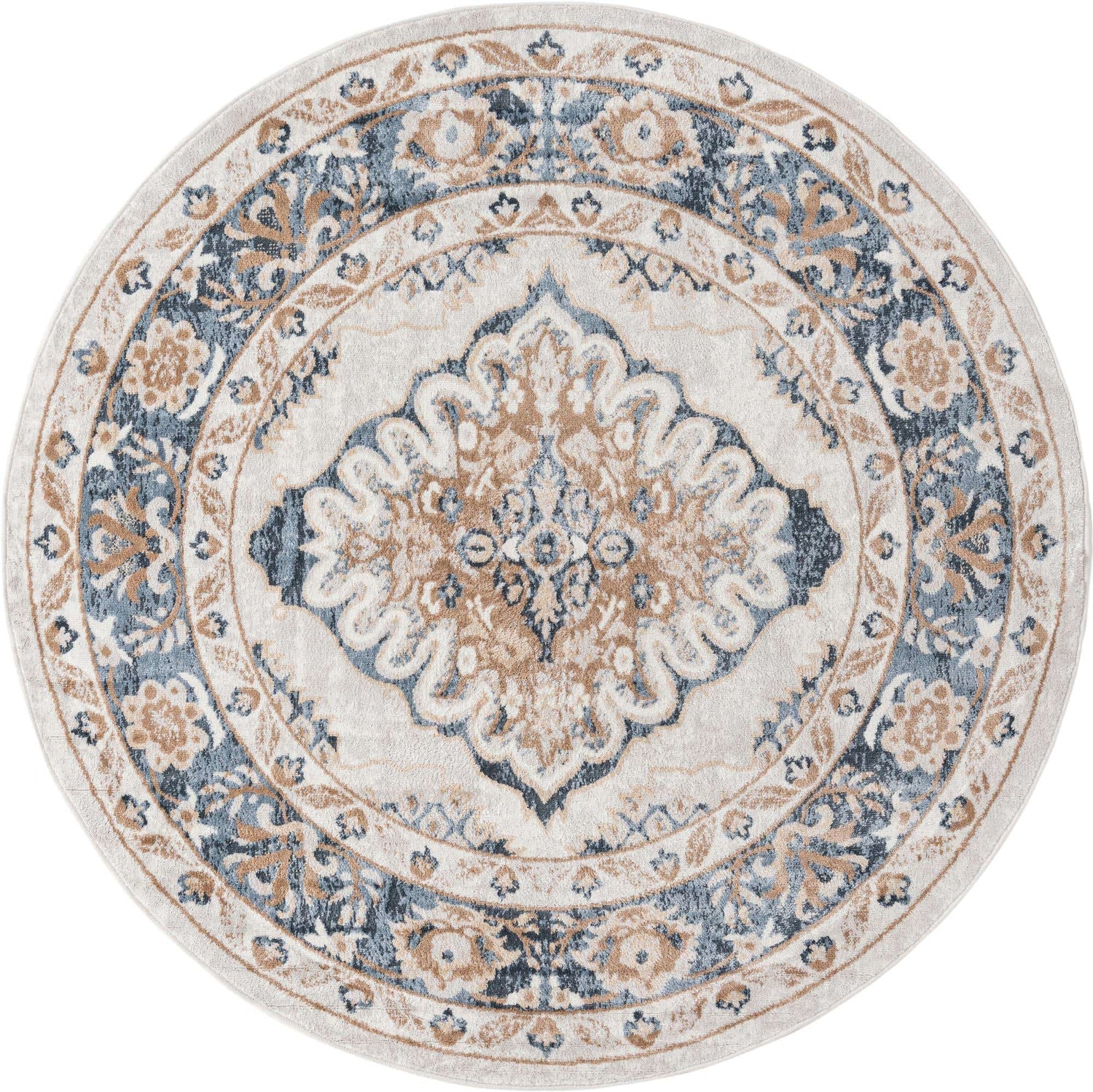 Washable Blue 5' x 5' Timeless Round Area Rug Easy to Clean Stain Resistant & Durable