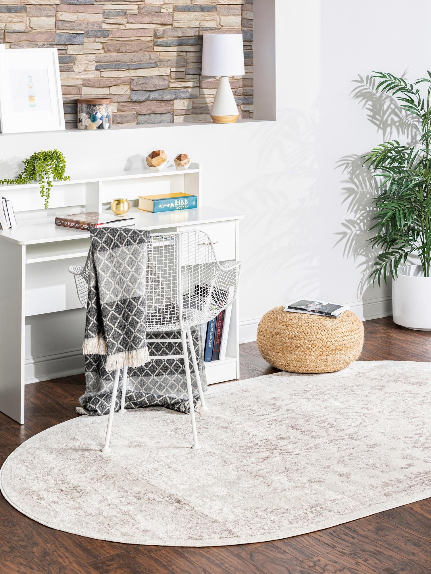 Washable Ivory 2' x 3' 1 Timeless Oval Area Rug Easy to Clean Stain Resistant & Durable