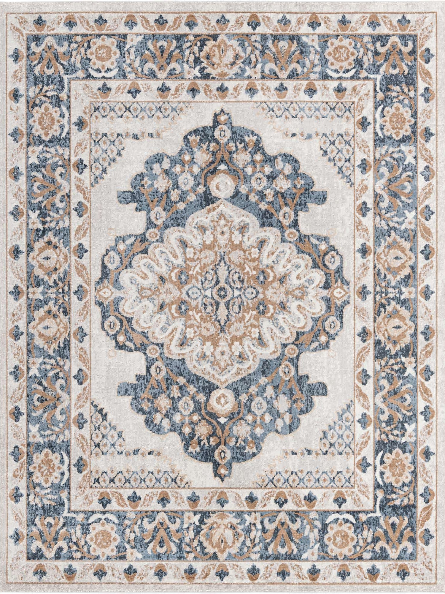 Washable Gray Blue 2' x 3' 1 Renaissance Rectangle Area Rug Easy to Clean Stain Resistant & Durable