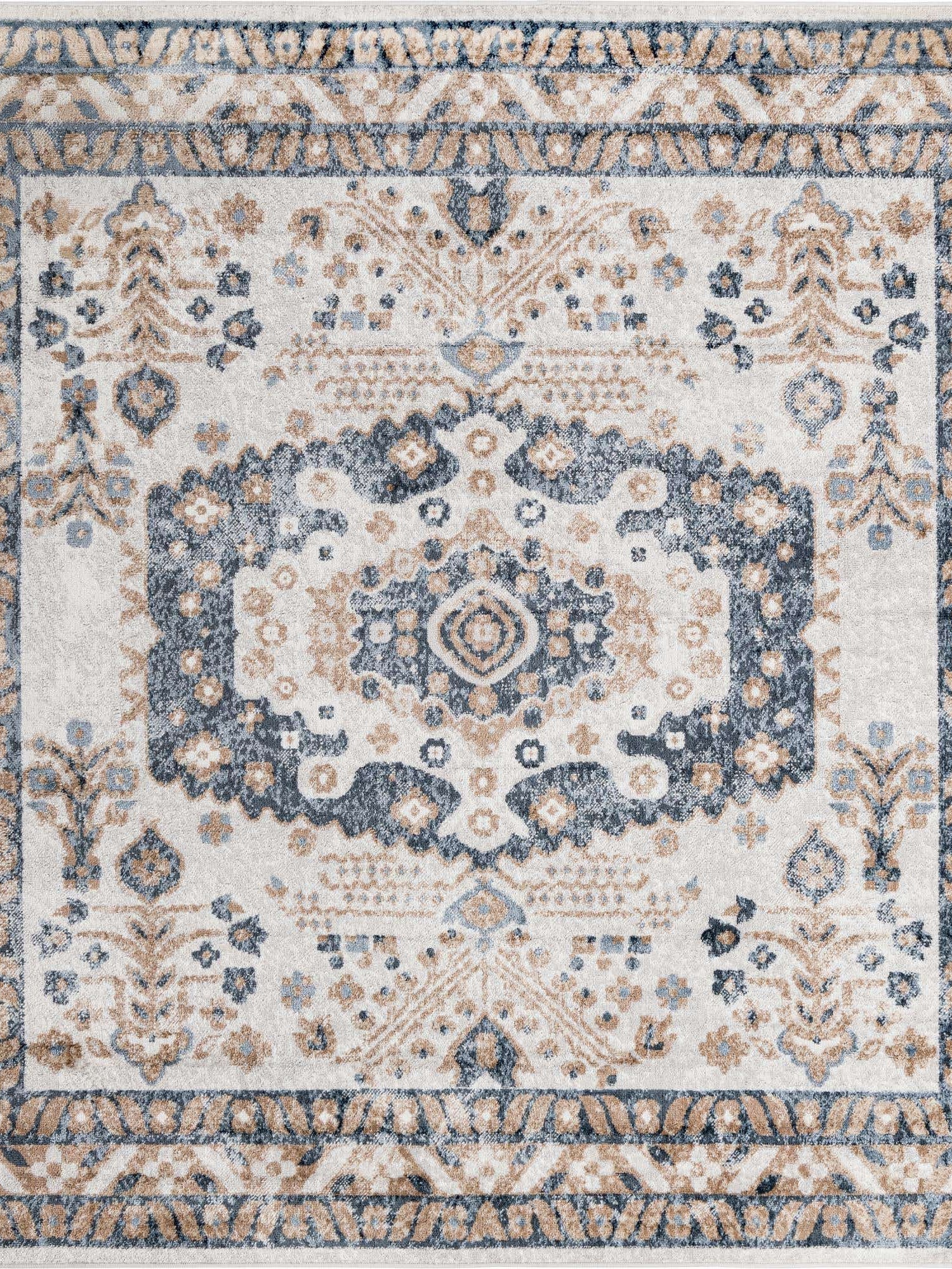 Washable Beige 7' 6 x 7' 6 Timeless Square Area Rug Easy to Clean Stain Resistant & Durable