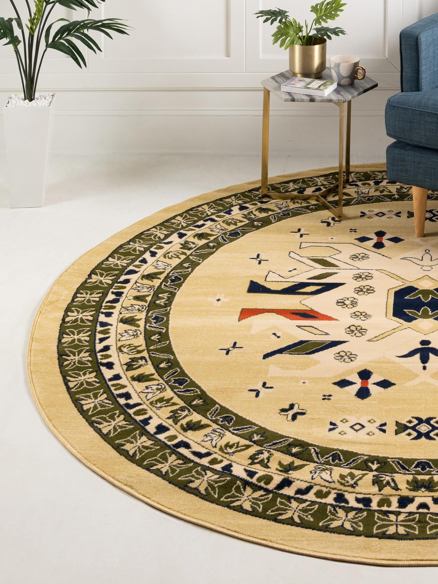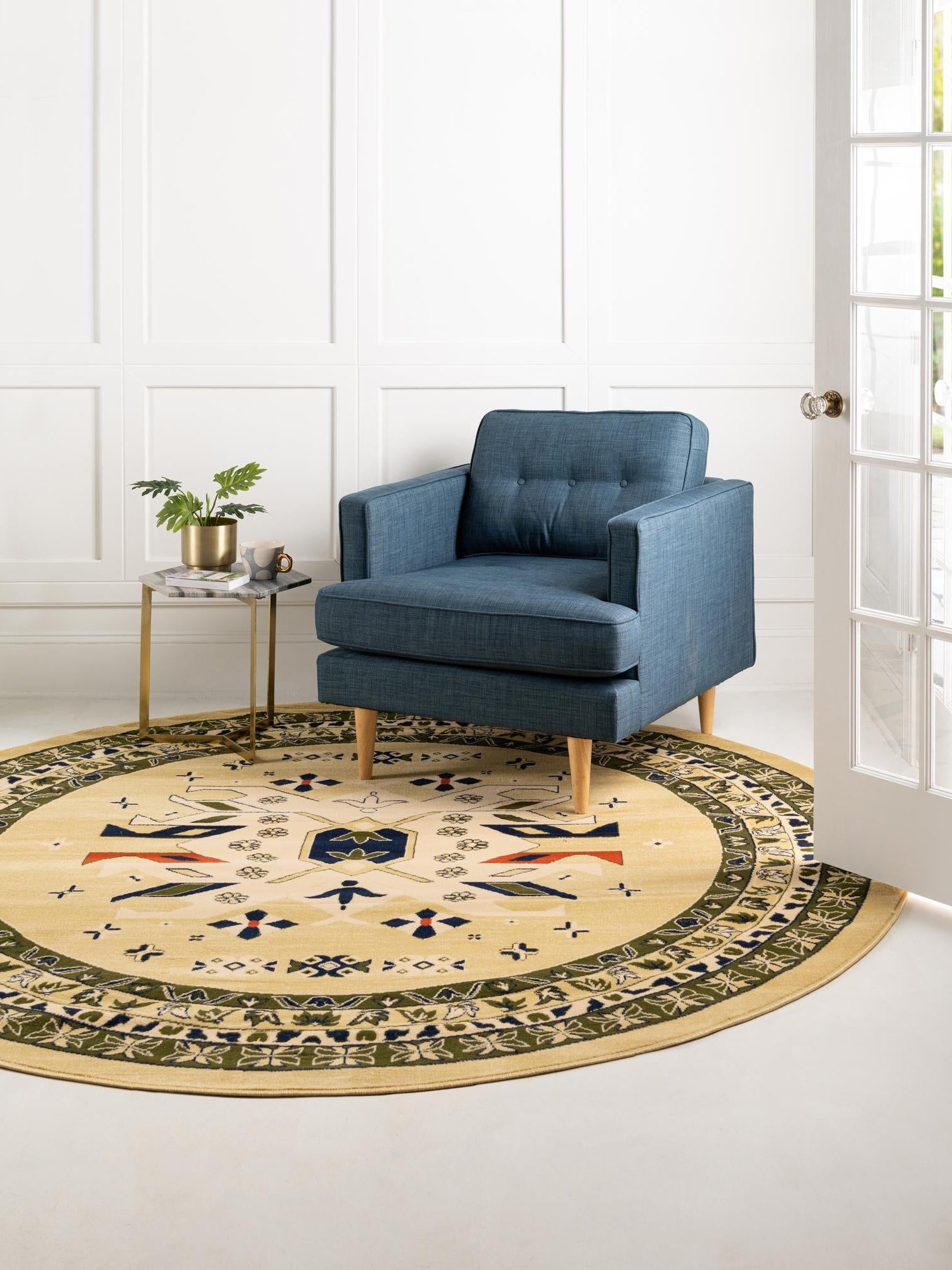 - Perfect Size: Measuring 7' 10" x 7' 10", this rug strikes a perfect balance between style and functionality. Its round shape allows for versatile placement in various spaces, making it an ideal fit for your living room, dining area, or bedroom. Experience the seamless integration of elegance and practicality in your home decor.