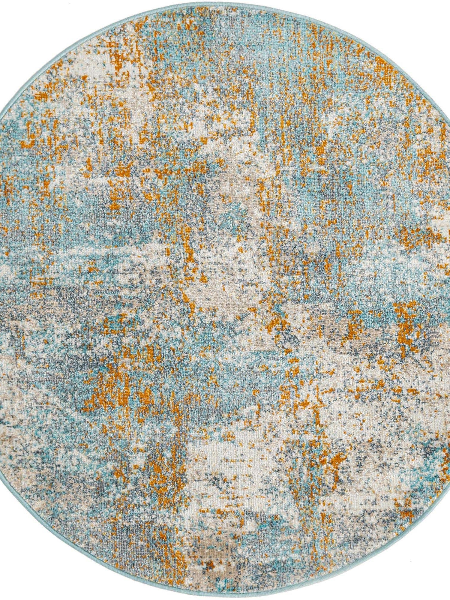 Cream Blue 3' 3 x 3' 3 Paragon Round Area Rug 100% Polypropylene Colorful Vivid Boho Style Modern Carpet for Unique Interiors