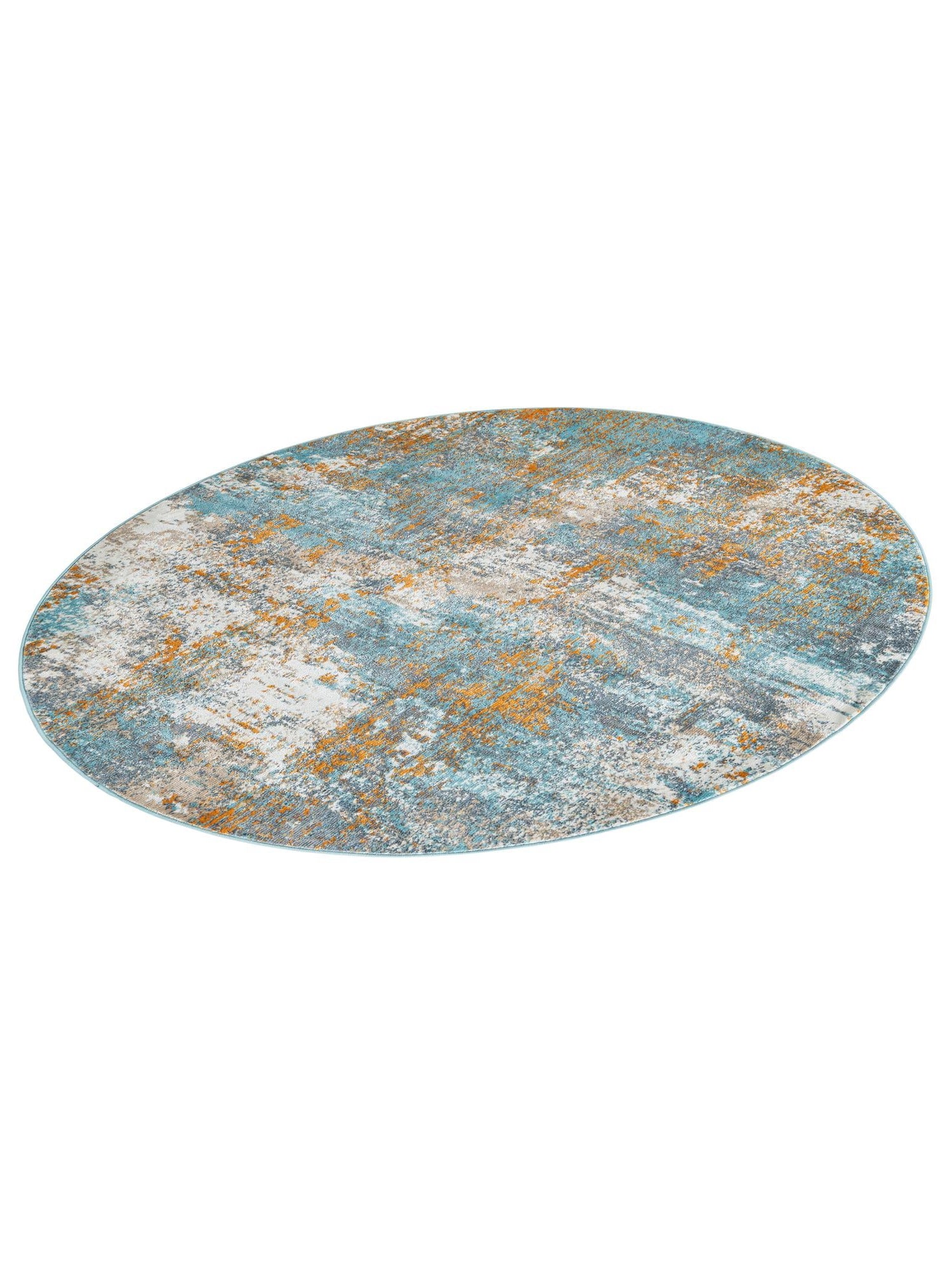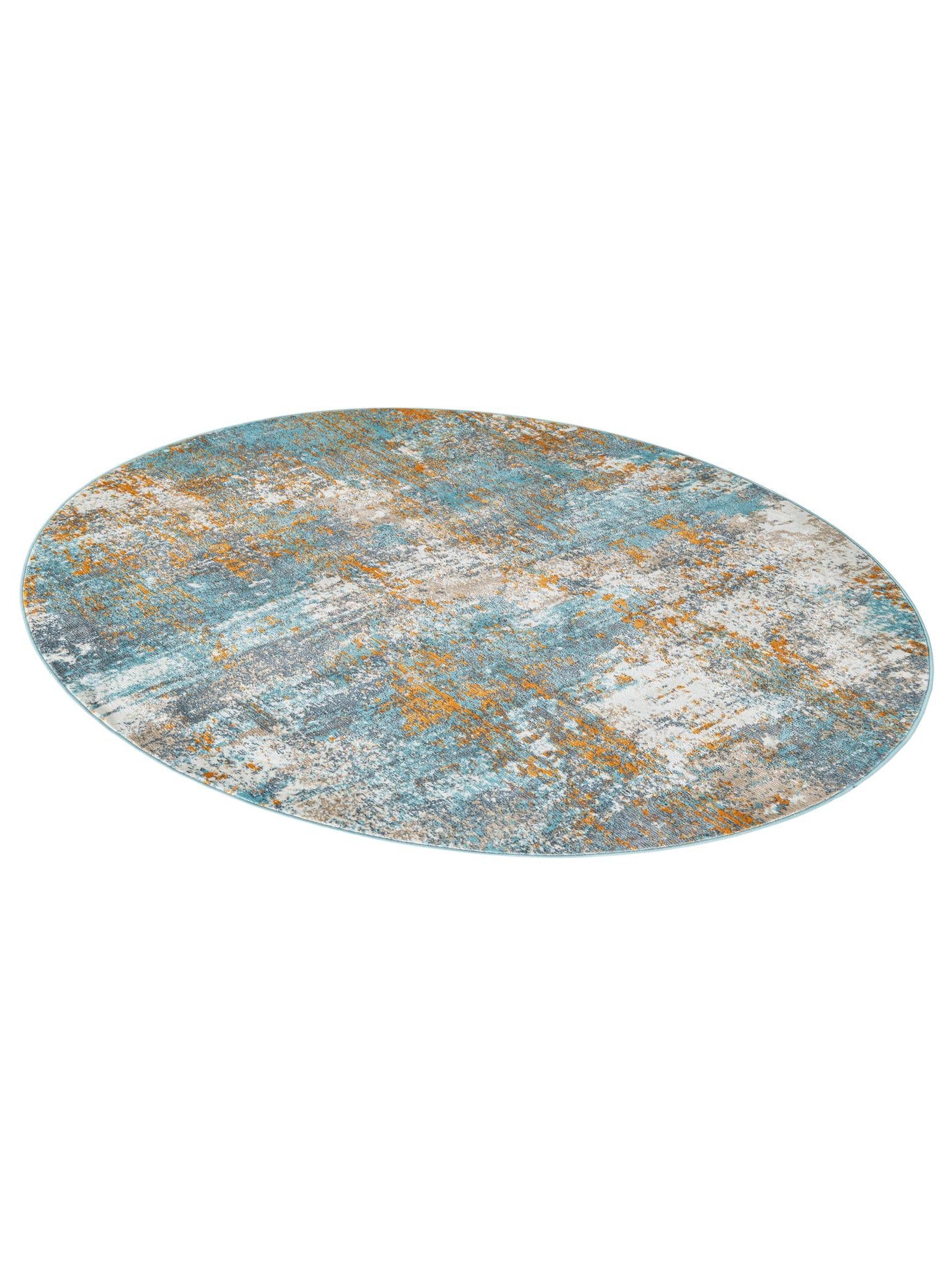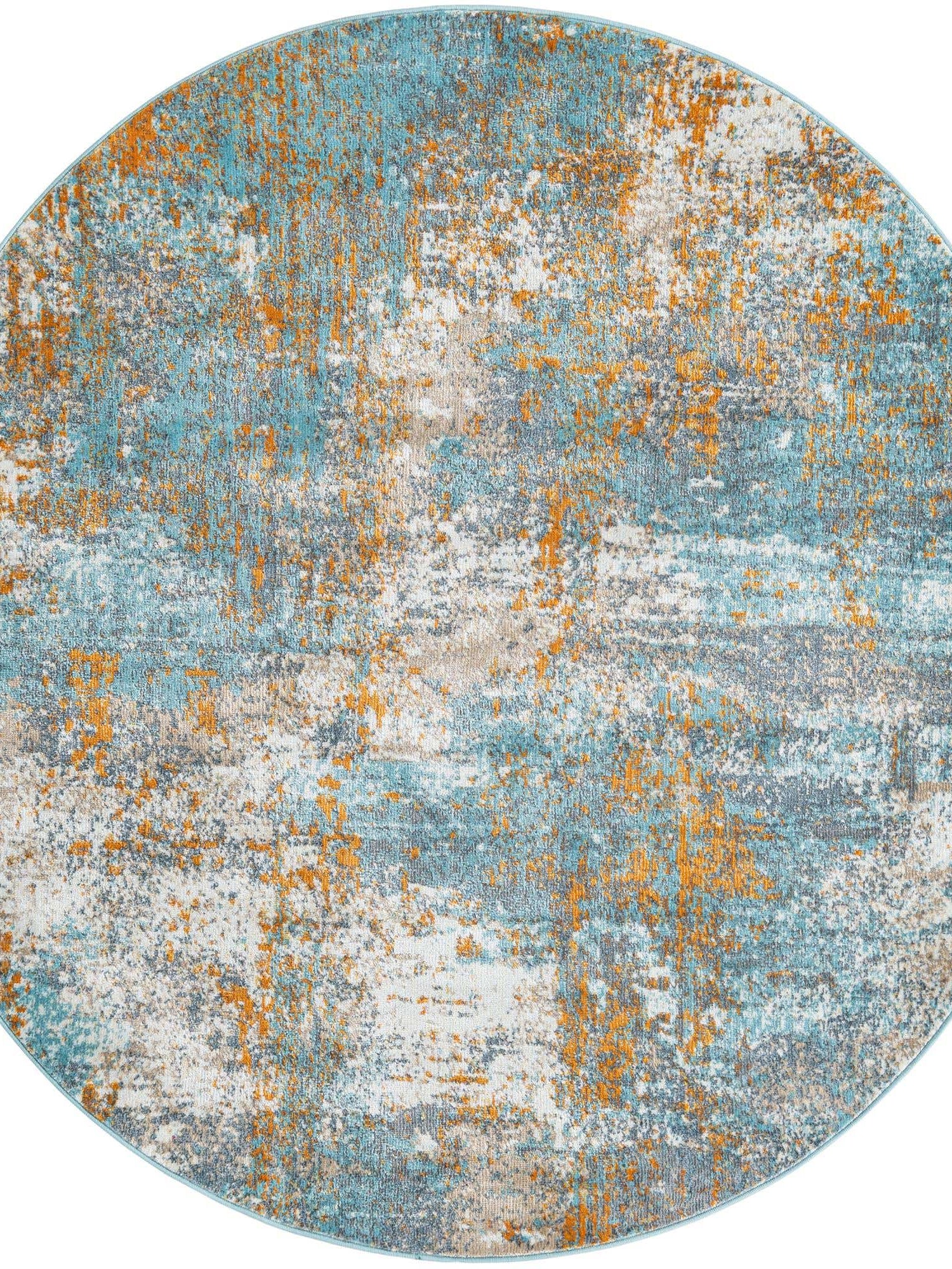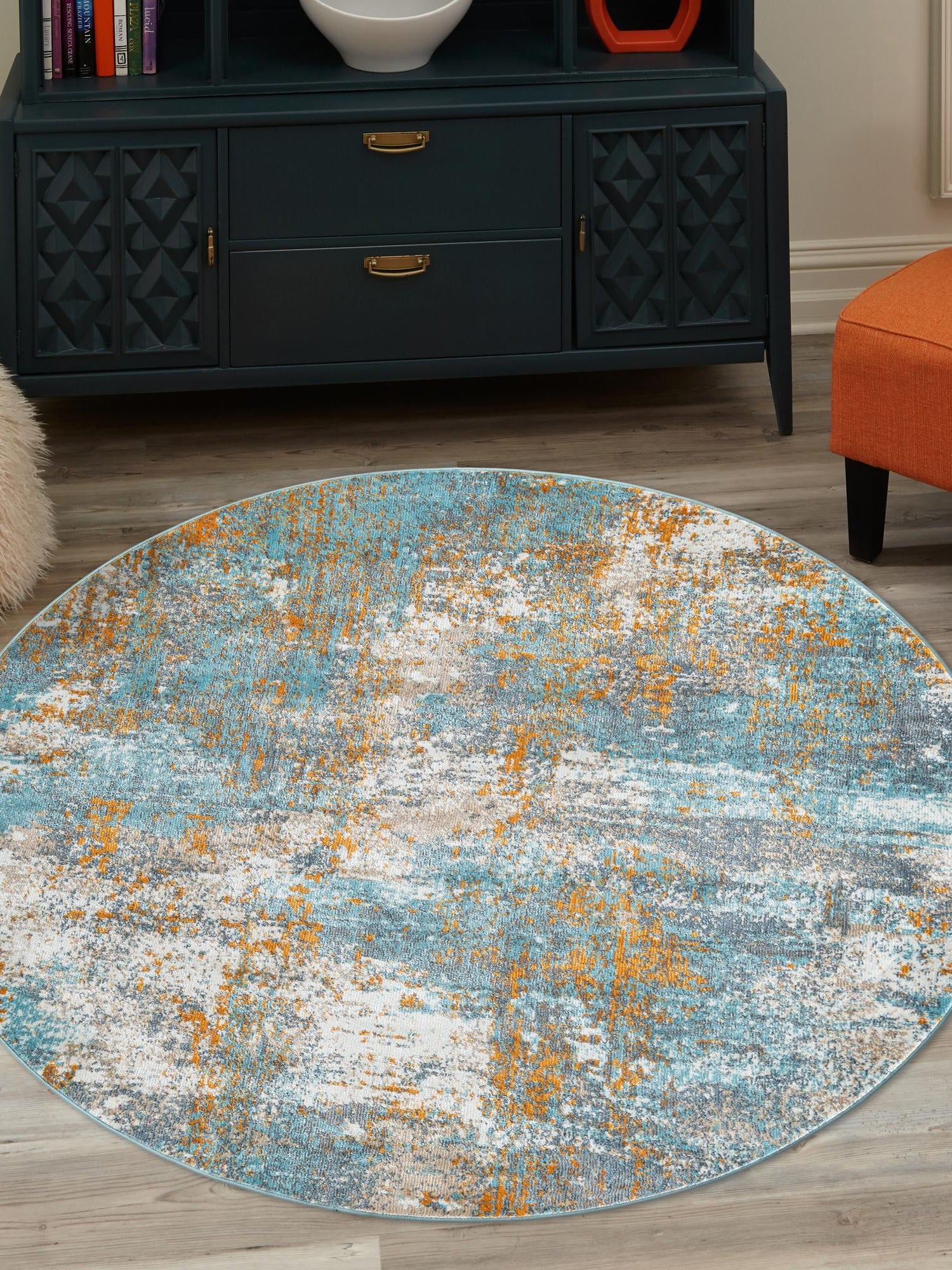 Cream Blue 5' 5 x 5' 5 Paragon Round Area Rug 100% Polypropylene Colorful Vivid Boho Style Modern Carpet for Unique Interiors