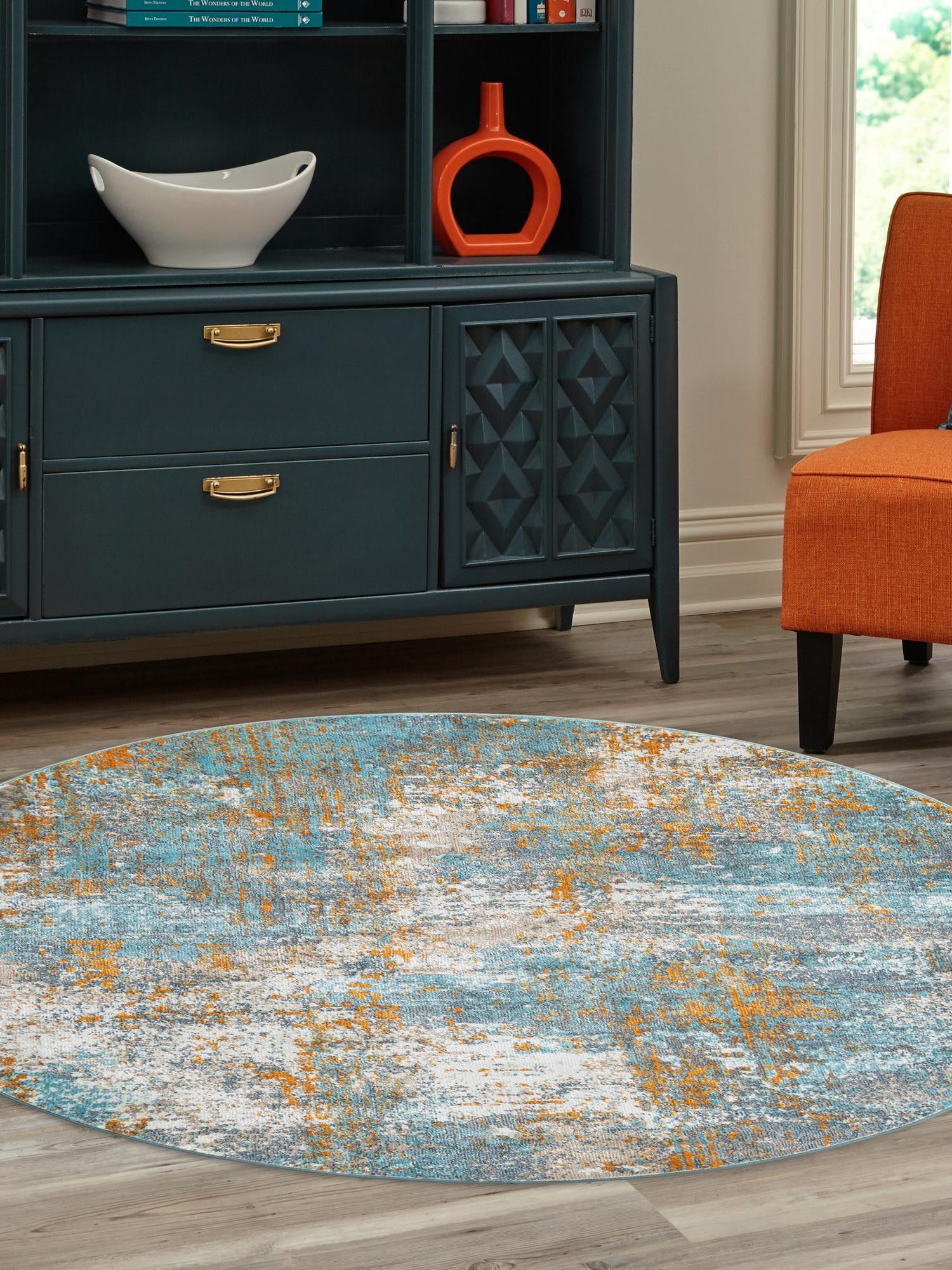 Washable Blue 5' x 5' Timeless Round Area Rug Easy to Clean Stain Resistant & Durable