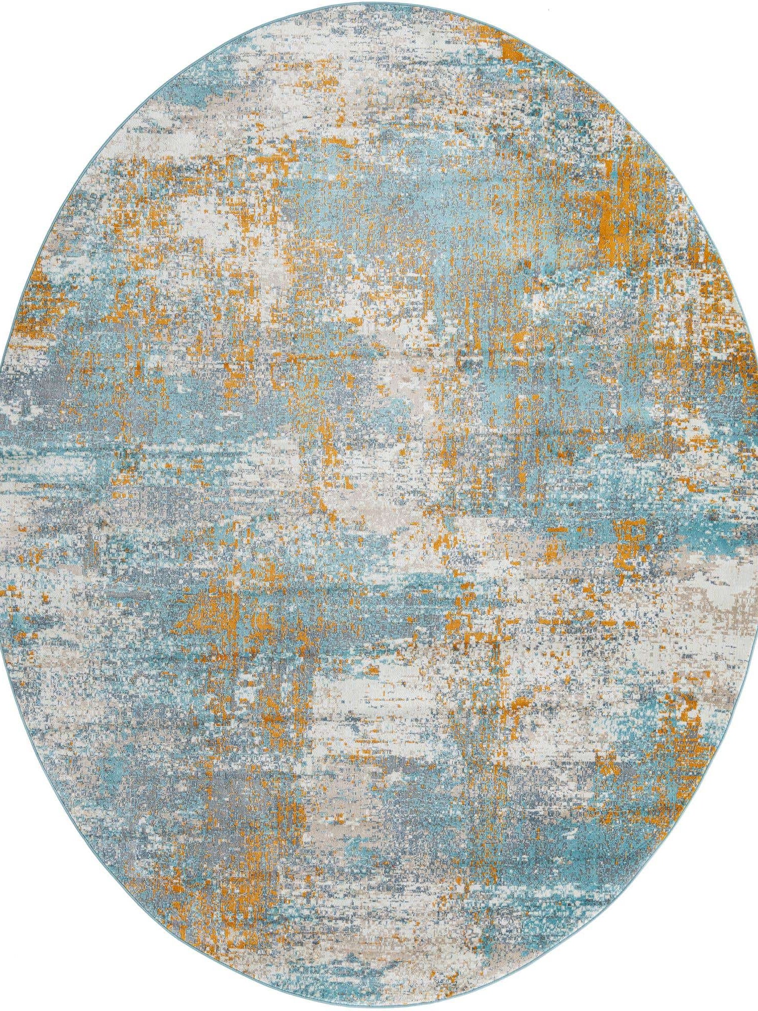 Cream Blue 8' 2 x 10' Paragon Oval Area Rug 100% Polypropylene Colorful Vivid Boho Style Modern Carpet for Unique Interiors