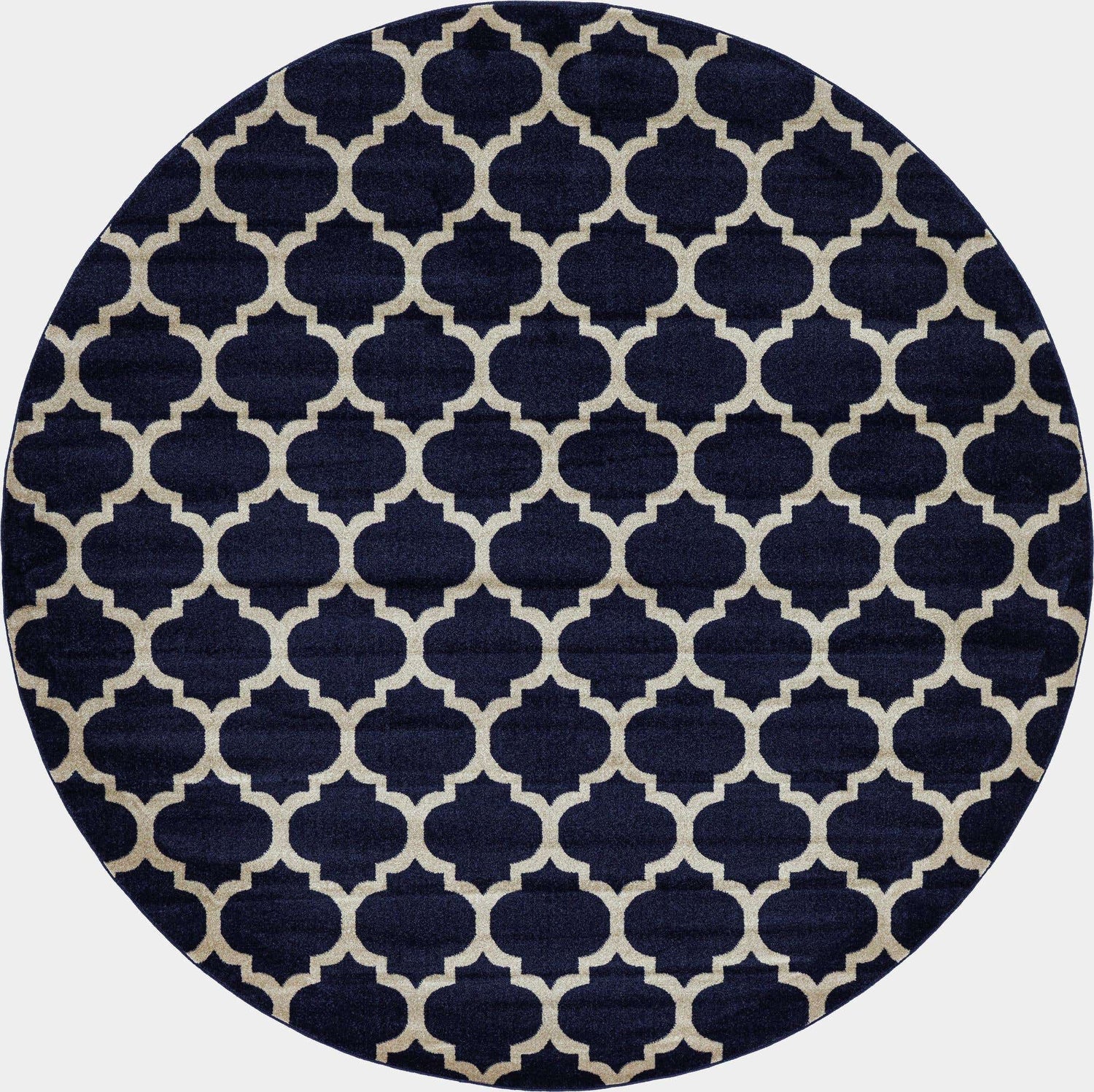 Dark Blue 10' x 10' Trellis Round Area Rug