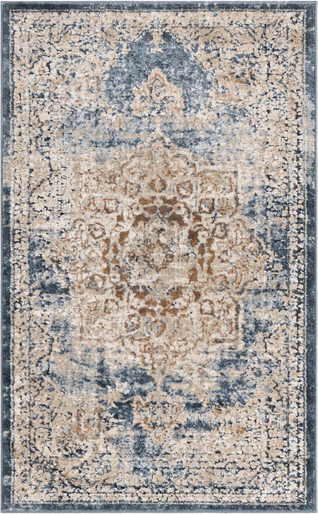 Washable Gray Blue 2' x 3' 1 Renaissance Rectangle Area Rug Easy to Clean Stain Resistant & Durable