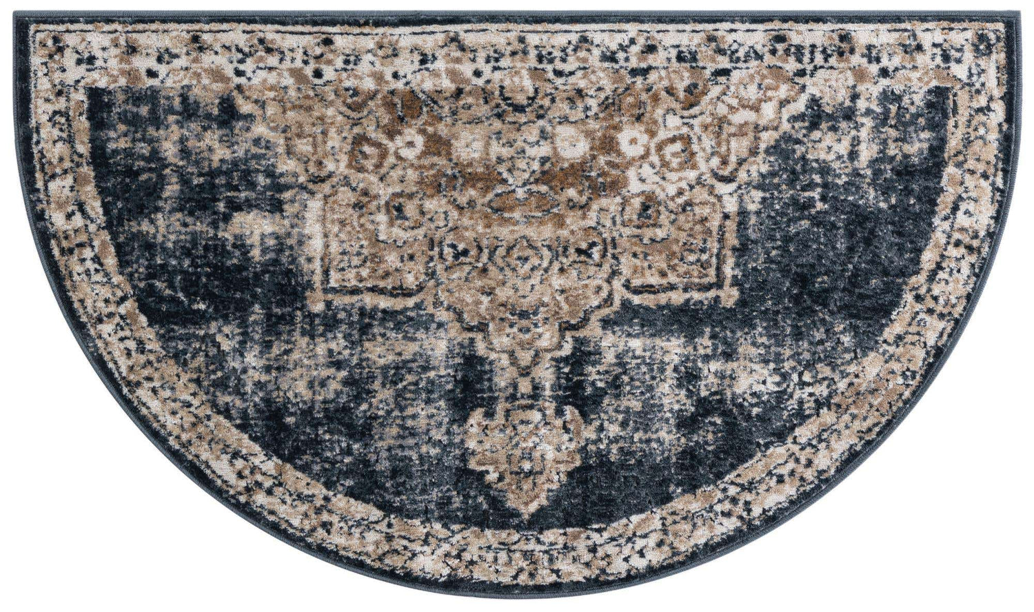 Dark Blue 2' x 3' 1 Chateau Hearth Half-Round Semicircle Area Rug 85% Polypropylene & 15% Chenille With Cotton Backing Traditional Vintage Distressed Carpet for Classical Interior Design Decorating