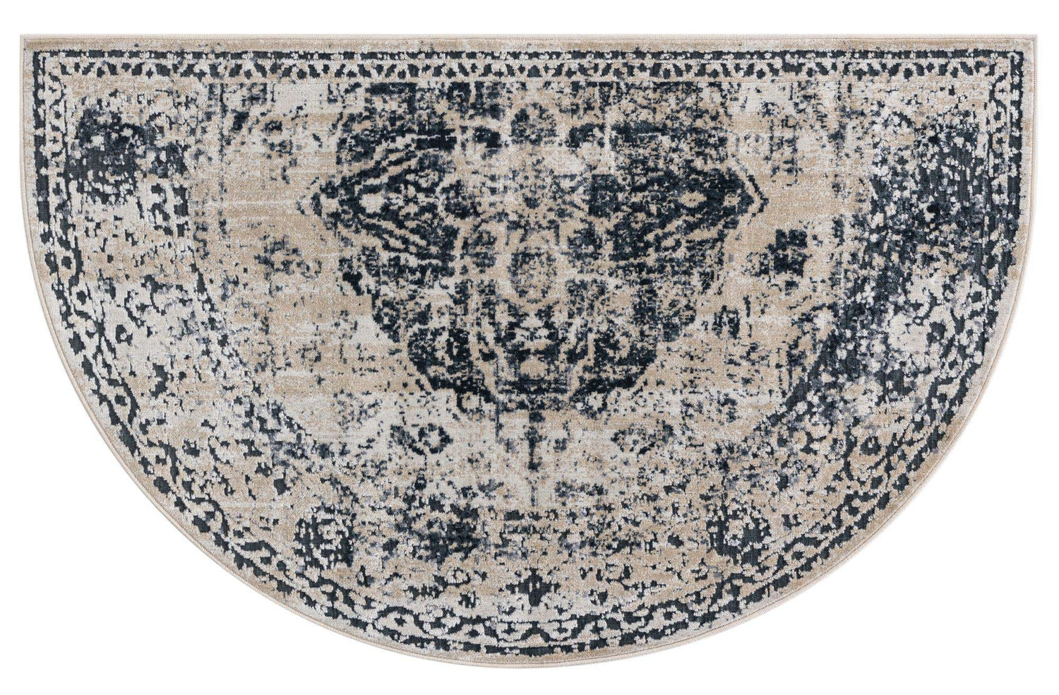 Dark Blue 2' 7 x 4' 1 Chateau Hearth Half-Round Semicircle Area Rug 85% Polypropylene & 15% Chenille With Cotton Backing Traditional Vintage Distressed Carpet for Classical Interior Design Decorating