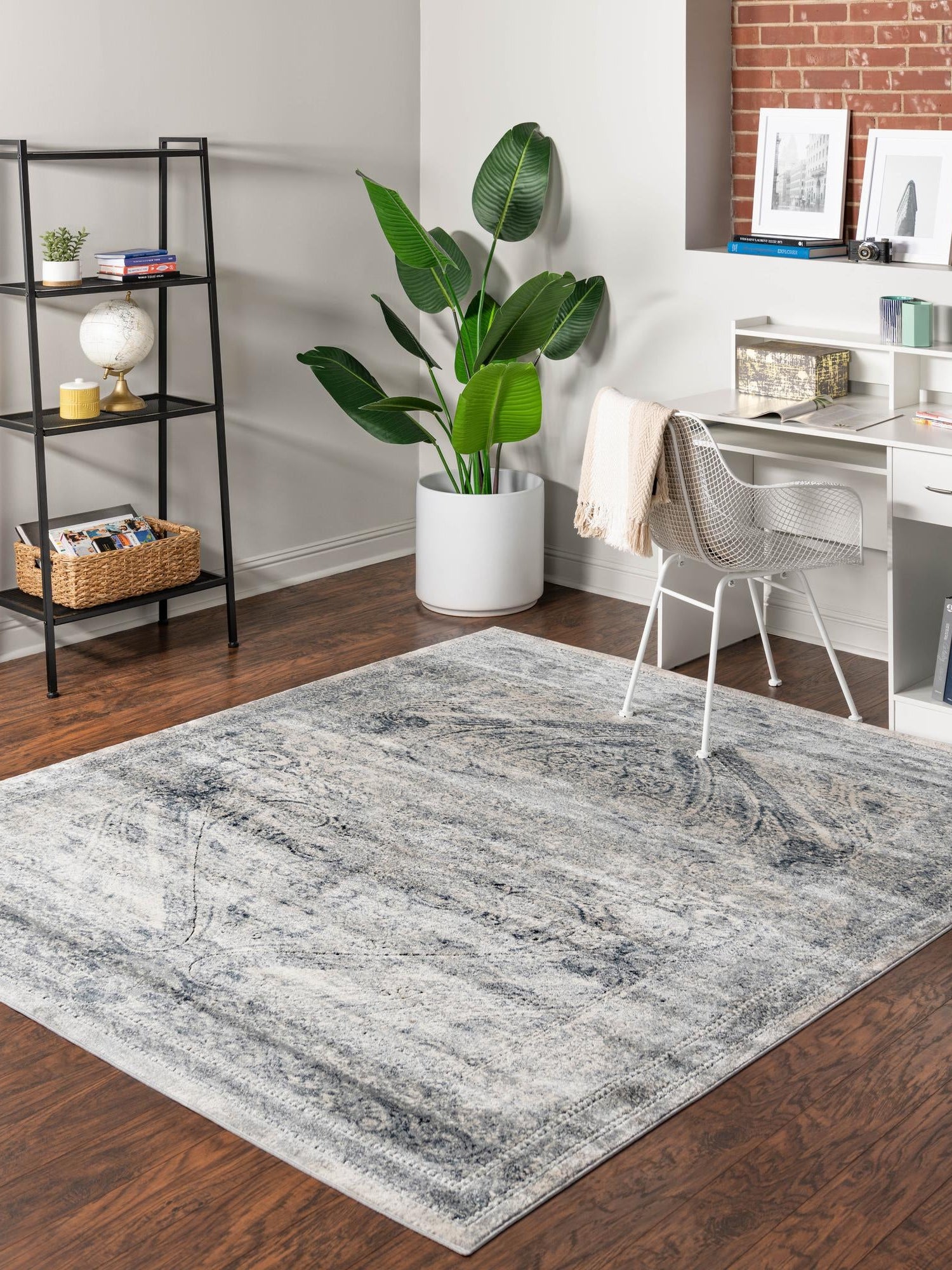 Washable Gray Blue 2' x 3' 1 Renaissance Rectangle Area Rug Easy to Clean Stain Resistant & Durable