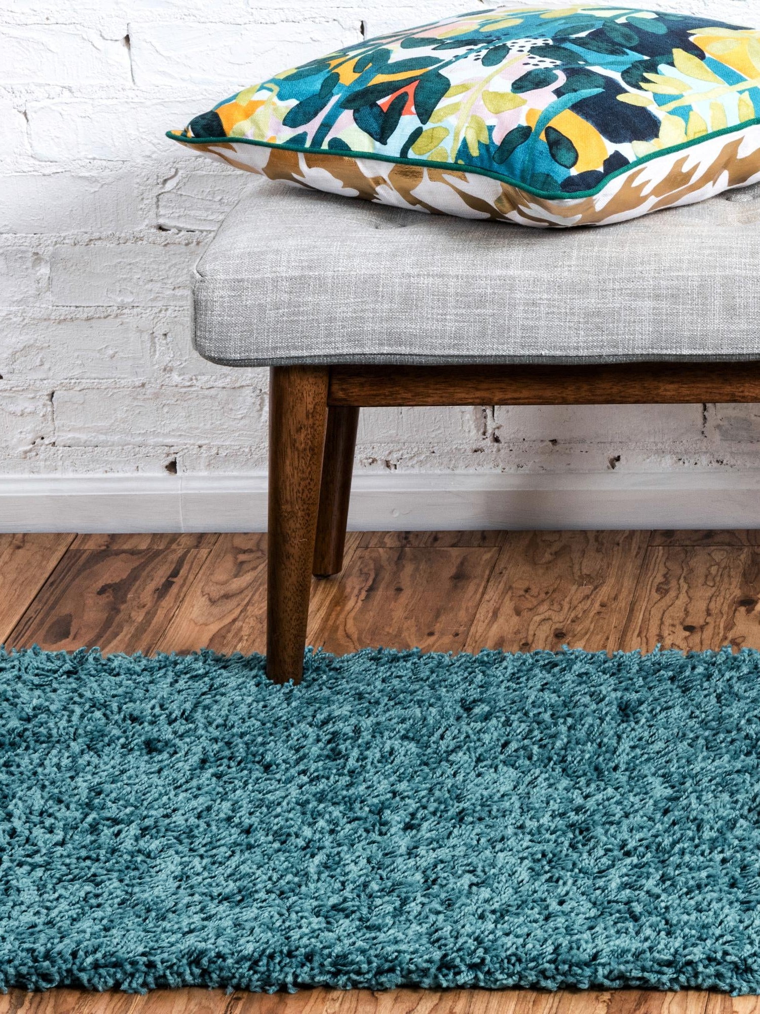 Deep Aqua Blue 2' 7 x 19' 8 Solid Shag Runner Area Rug Thic...
