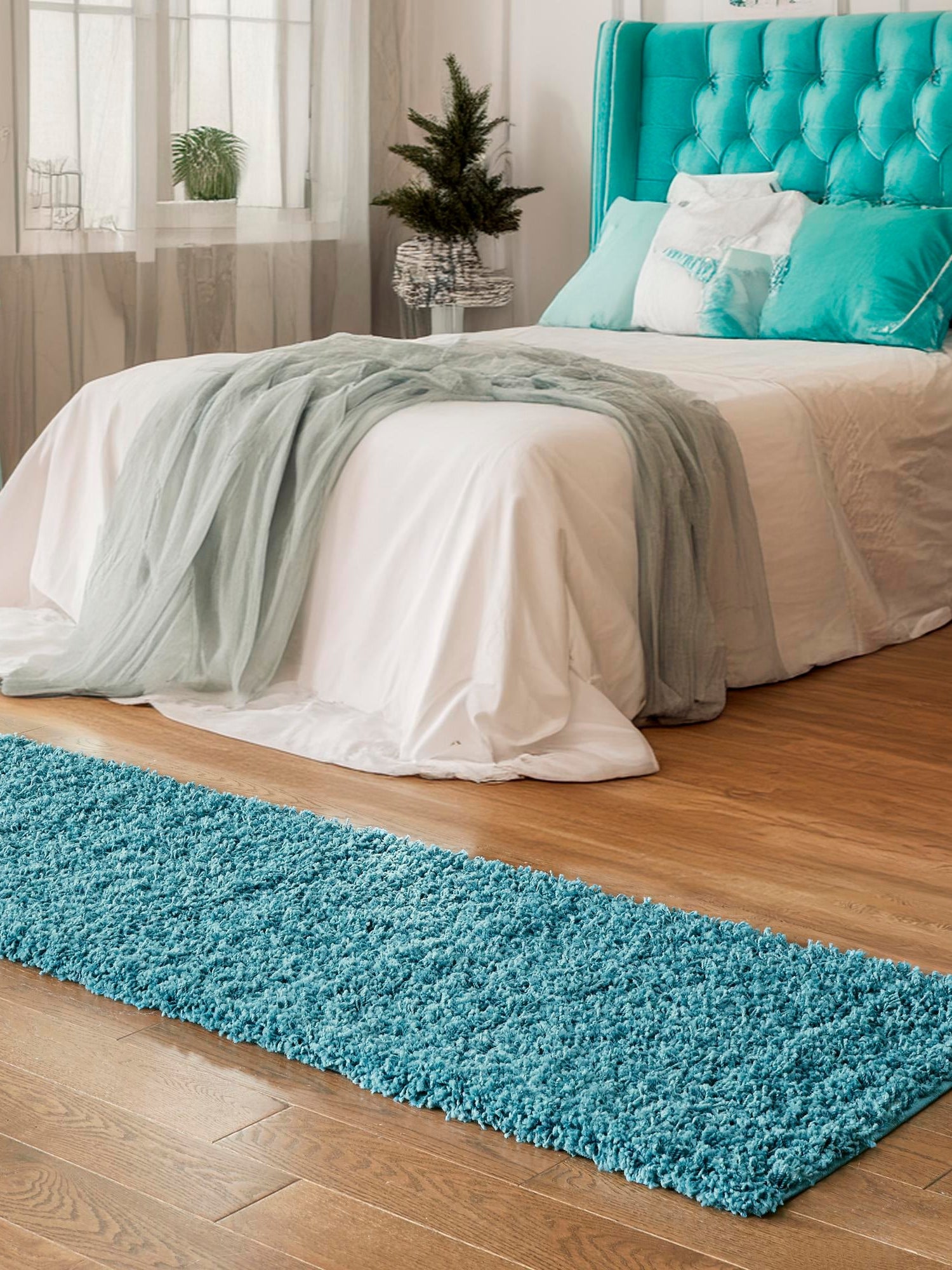 Deep Aqua Blue 2' 7 x 19' 8 Solid Shag Runner Area Rug Thick Soft Touch Fluffy & Plush Shaggy Pile