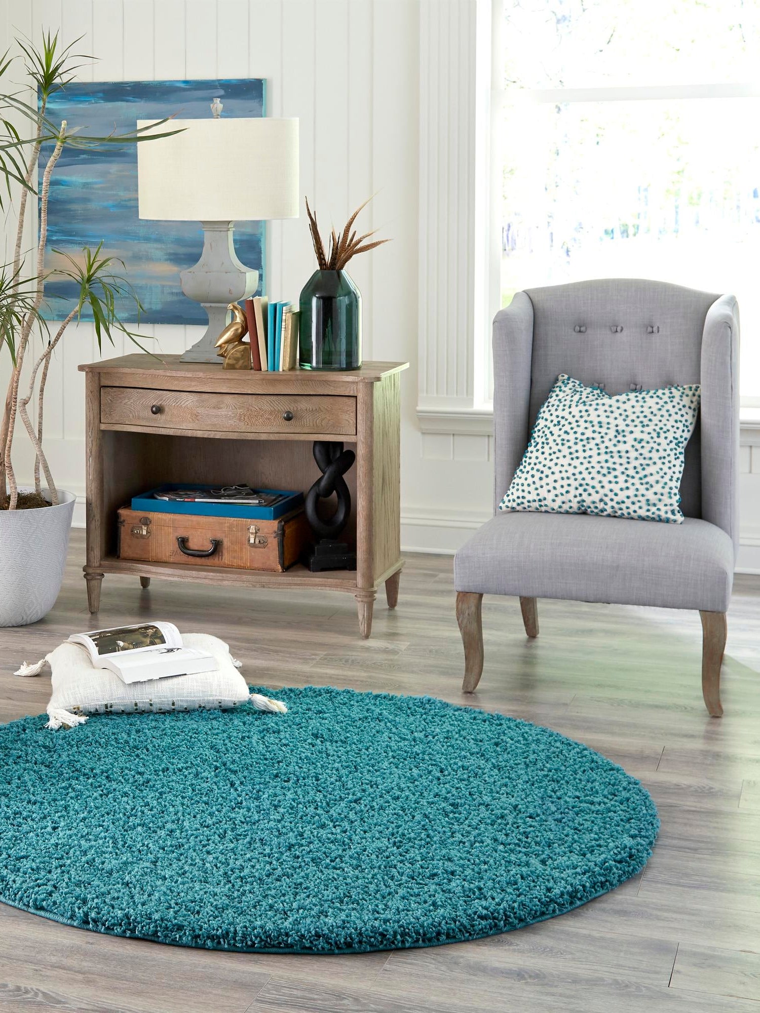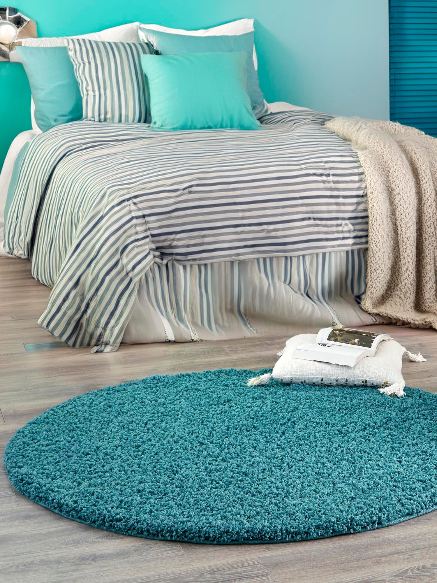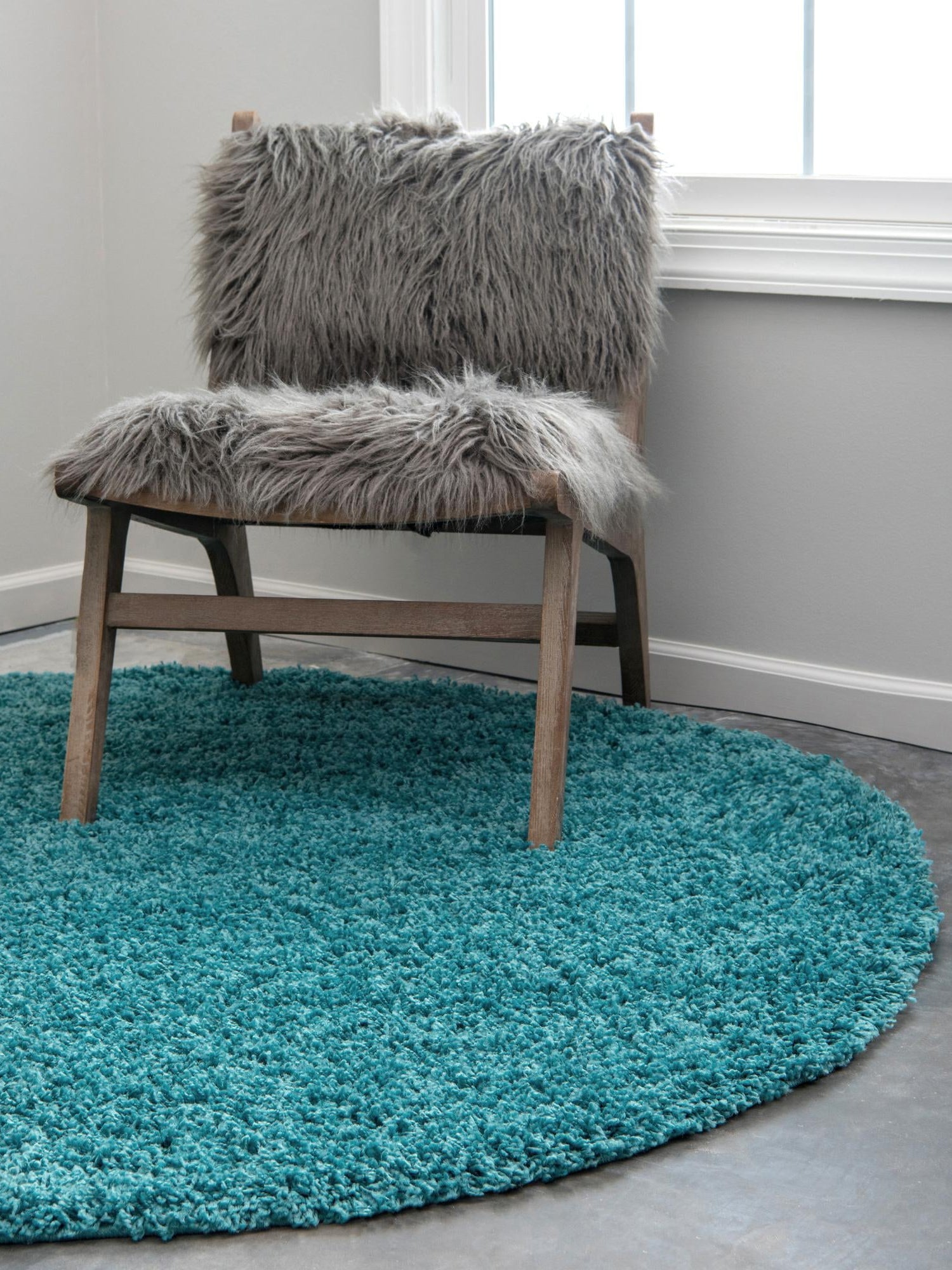 Deep Aqua Blue 3' 1 x 3' 1 Solid Shag Round Area Rug Thick ...