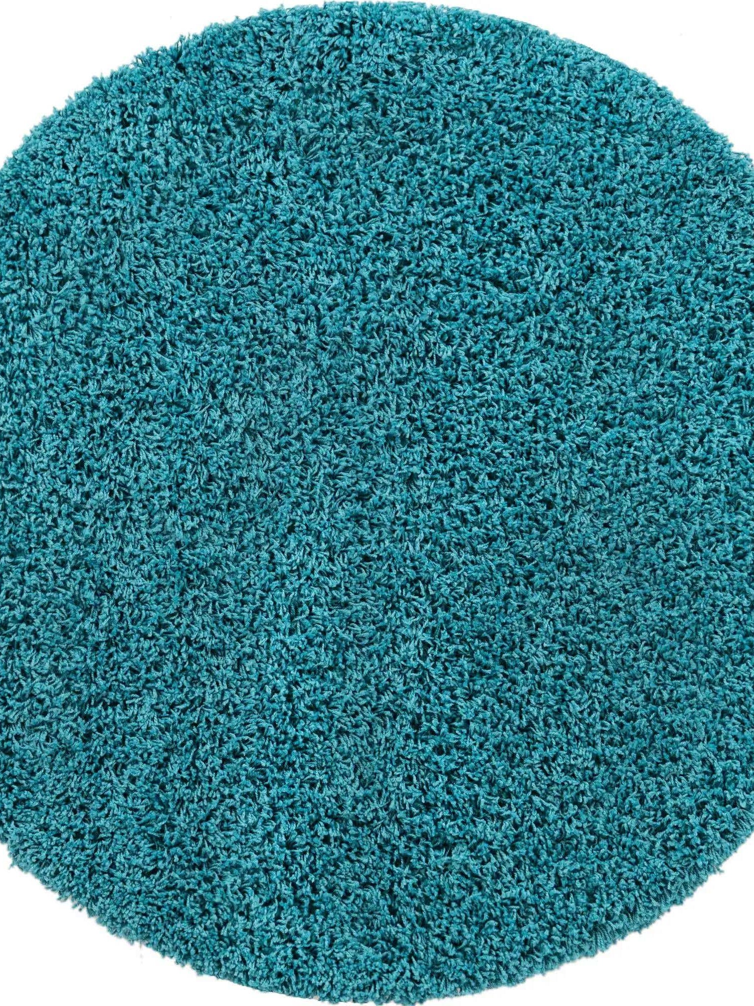 Deep Aqua Blue 6' 1 x 6' 1 Solid Shag Round Area Rug Thick Soft Touch Fluffy & Plush Shaggy Pile