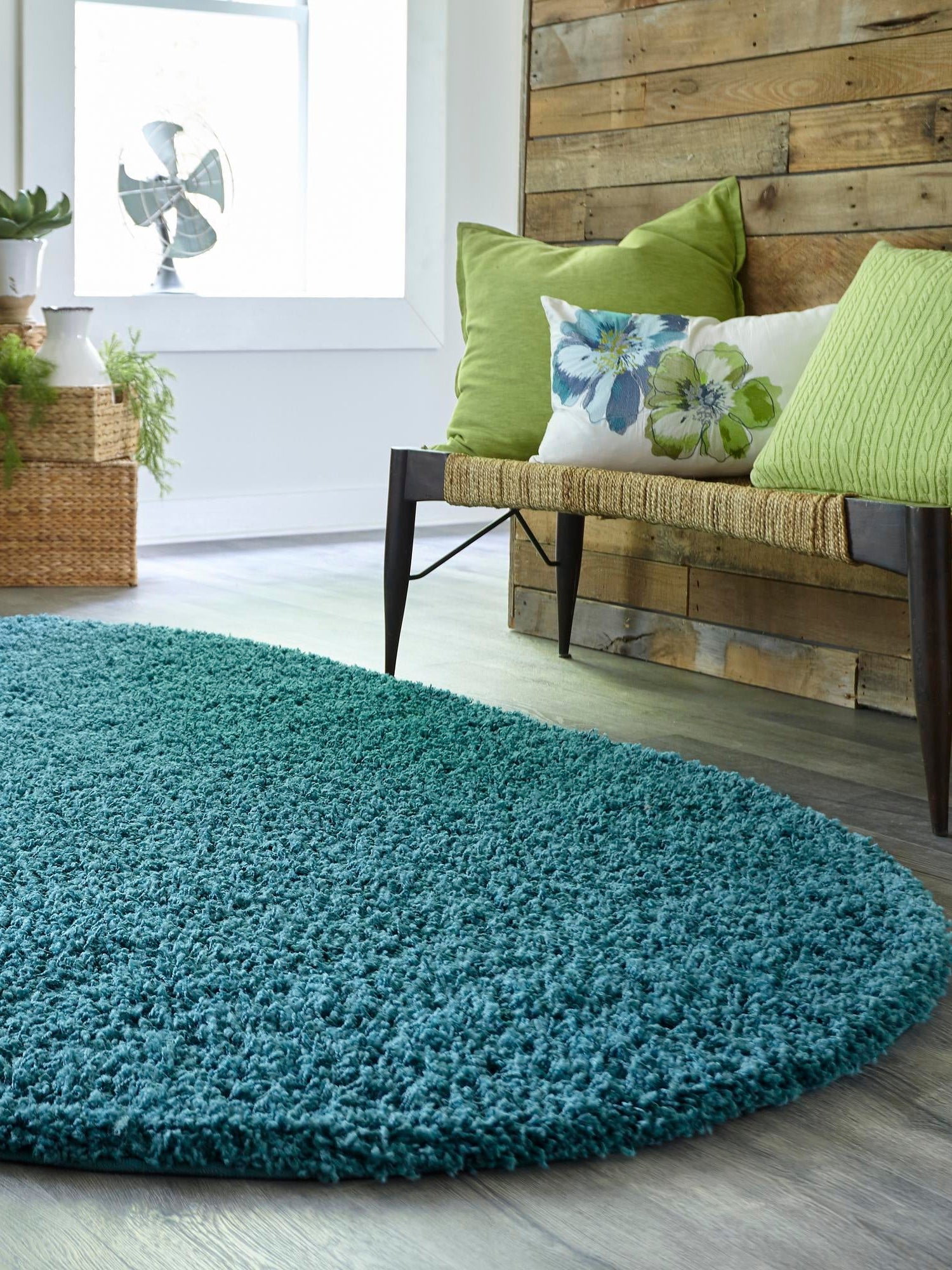 Deep Aqua Blue 7' 10 x 10' Solid Shag Oval Area Rug Thick Soft Touch Fluffy & Plush Shaggy Pile