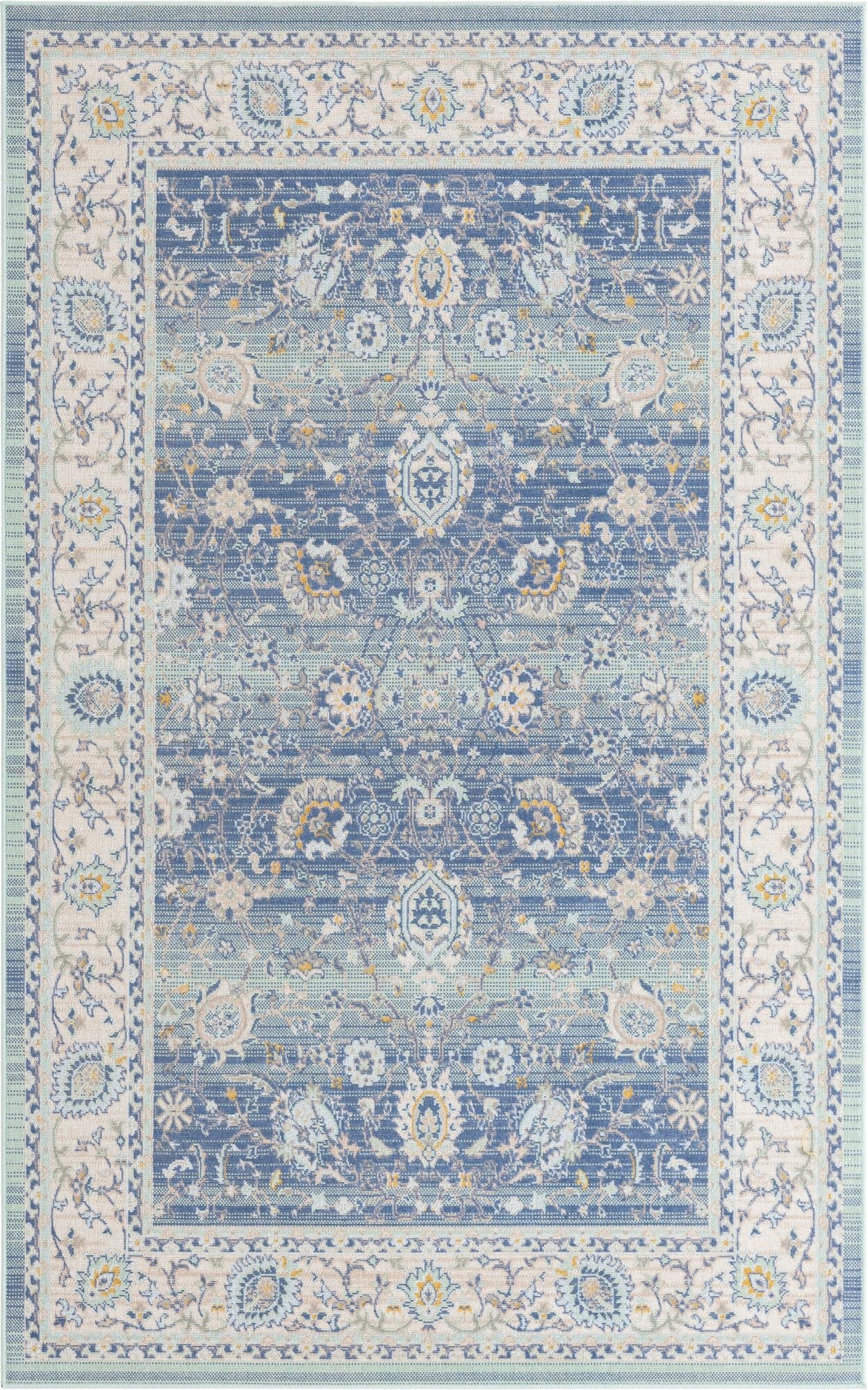 Washable Blue 5' x 5' Timeless Round Area Rug Easy to Clean Stain Resistant & Durable