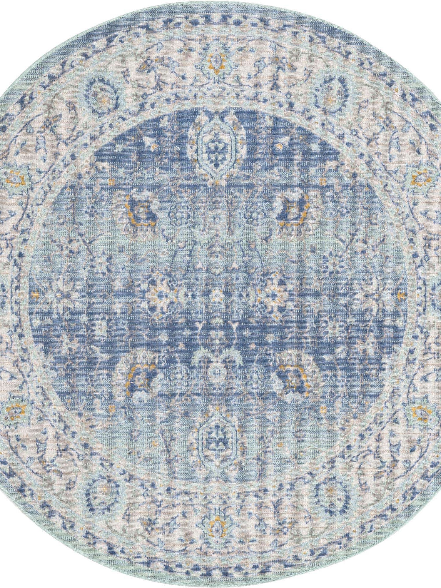 Washable Blue 5' x 5' Timeless Round Area Rug Easy to Clean Stain Resistant & Durable
