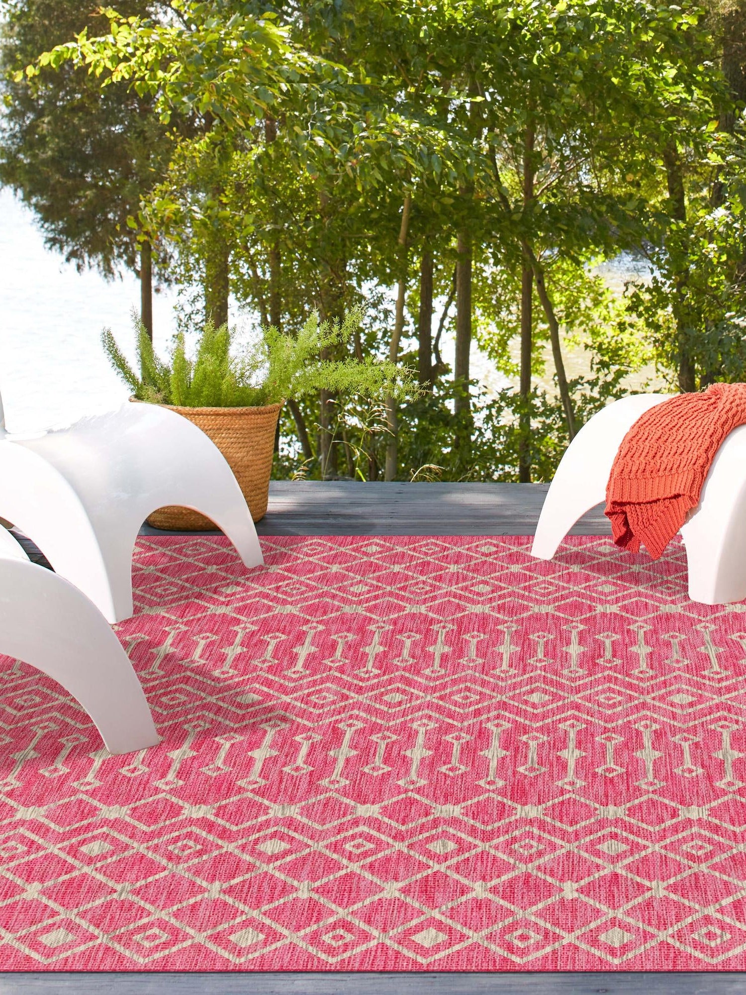 Fuschia 6' 1 x 9' Outdoor Trellis Rectangle Area Rug Weathe...