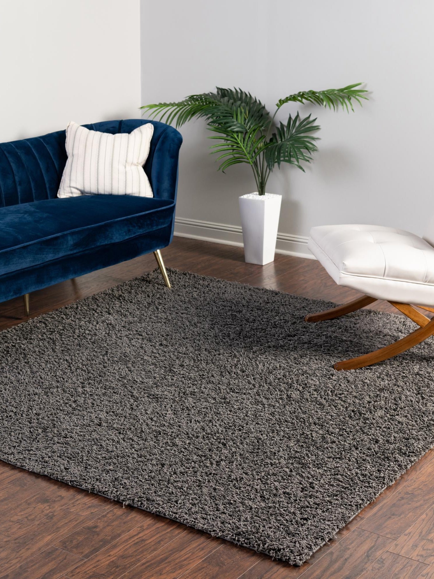 Graphite Gray 7' x 7' Comfort Solid Shag Square Area Rug Th...