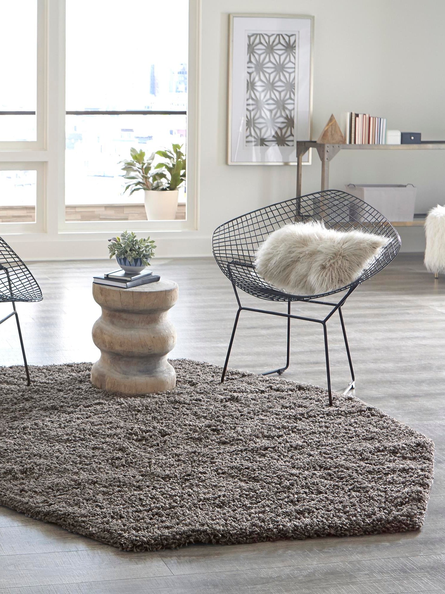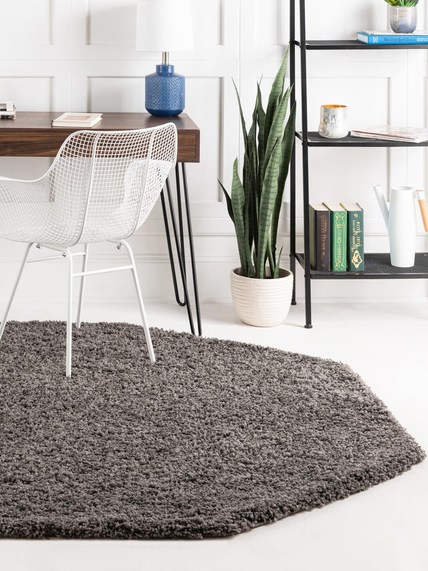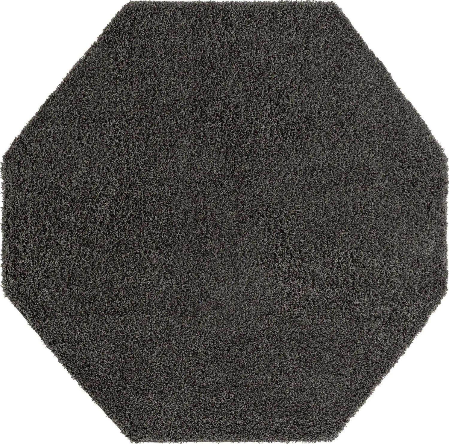 Graphite Gray 7' 10 x 7' 10 Solid Shag Octagon Area Rug Thi...