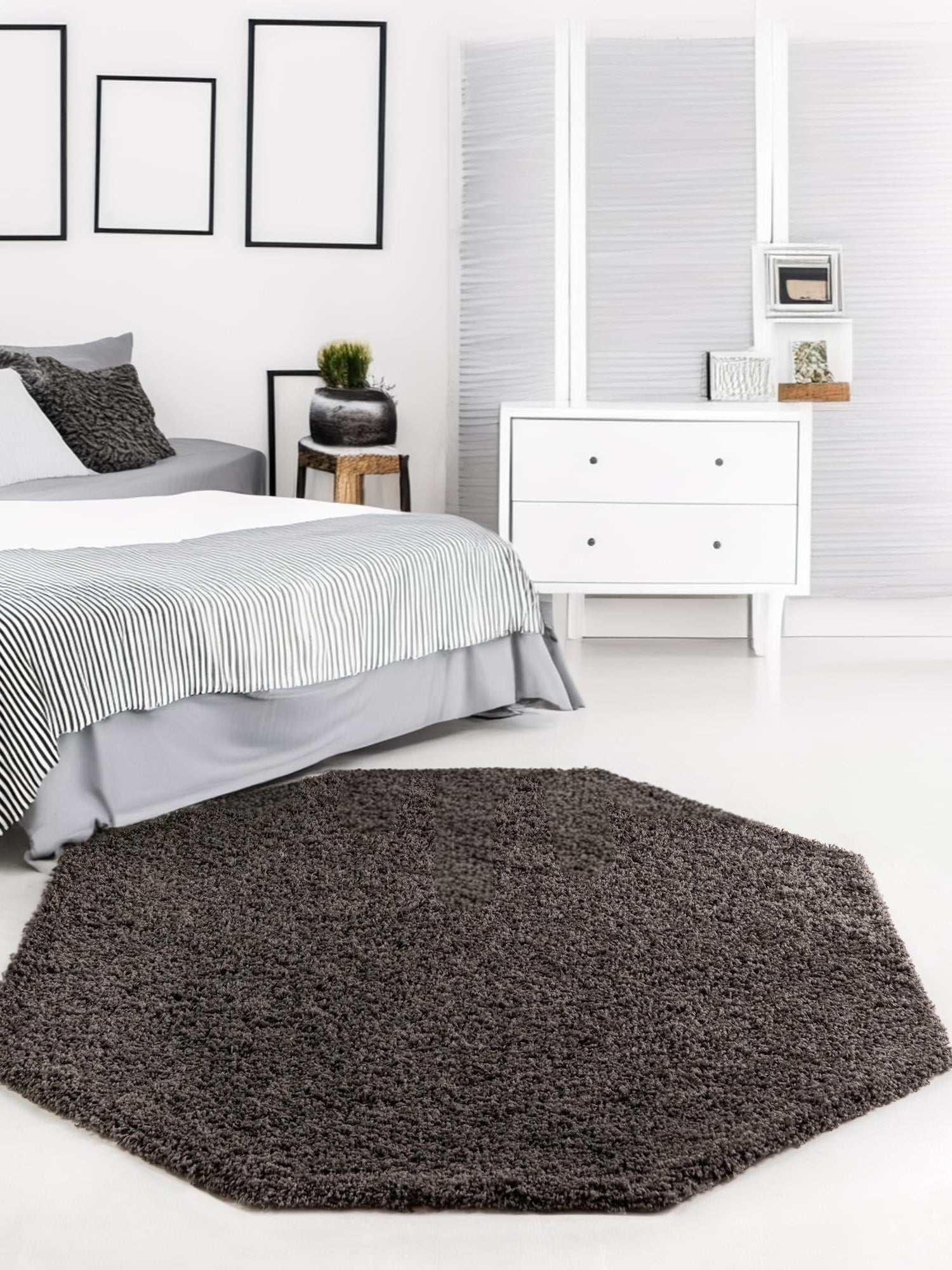 Graphite Gray 7' 10 x 7' 10 Solid Shag Octagon Area Rug Thick Soft Touch Fluffy & Plush Shaggy Pile