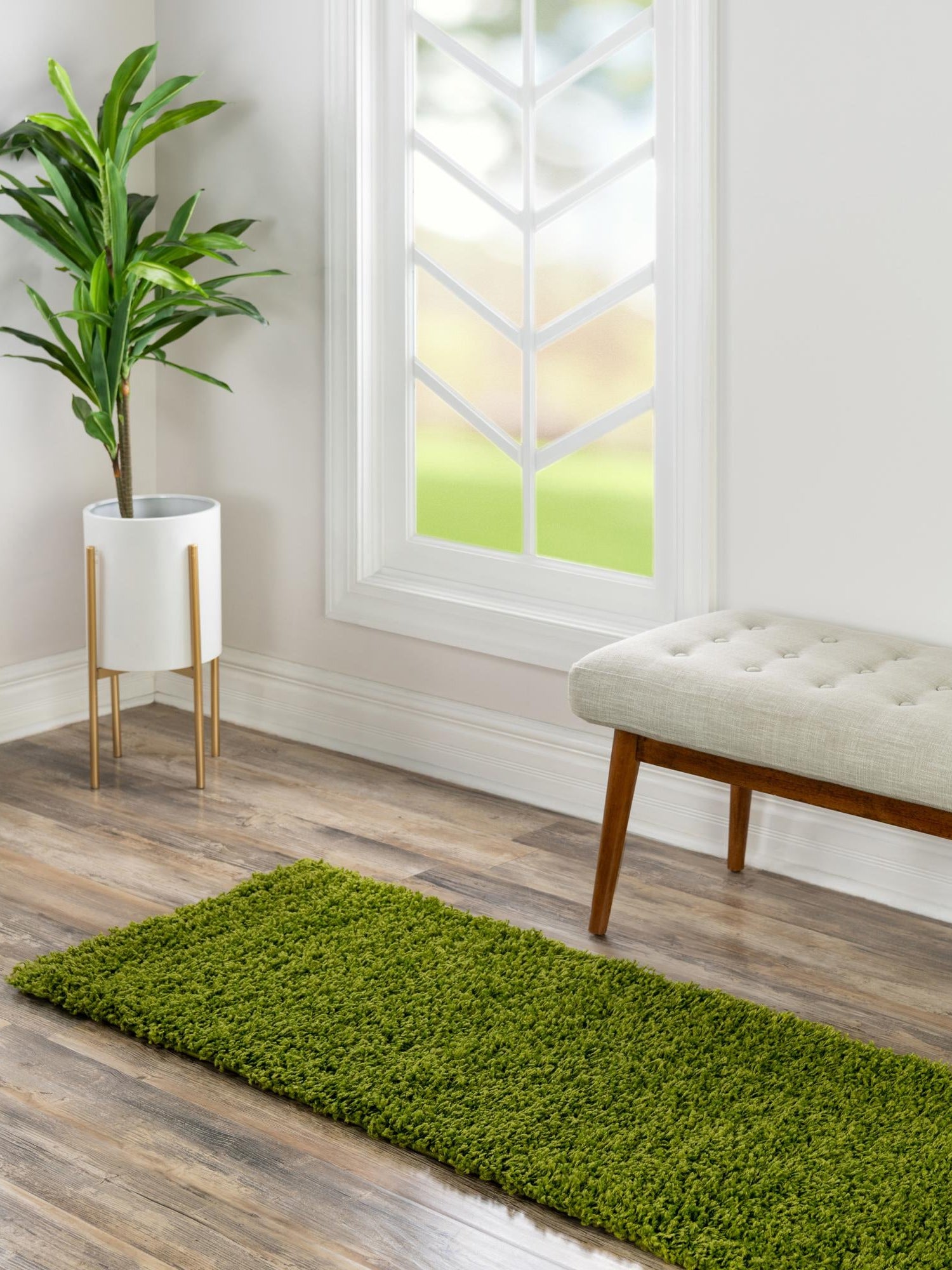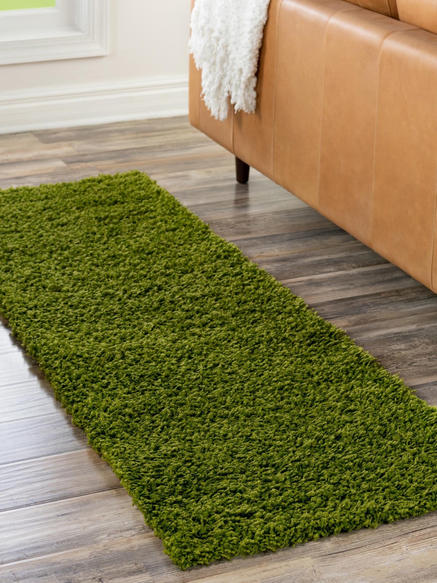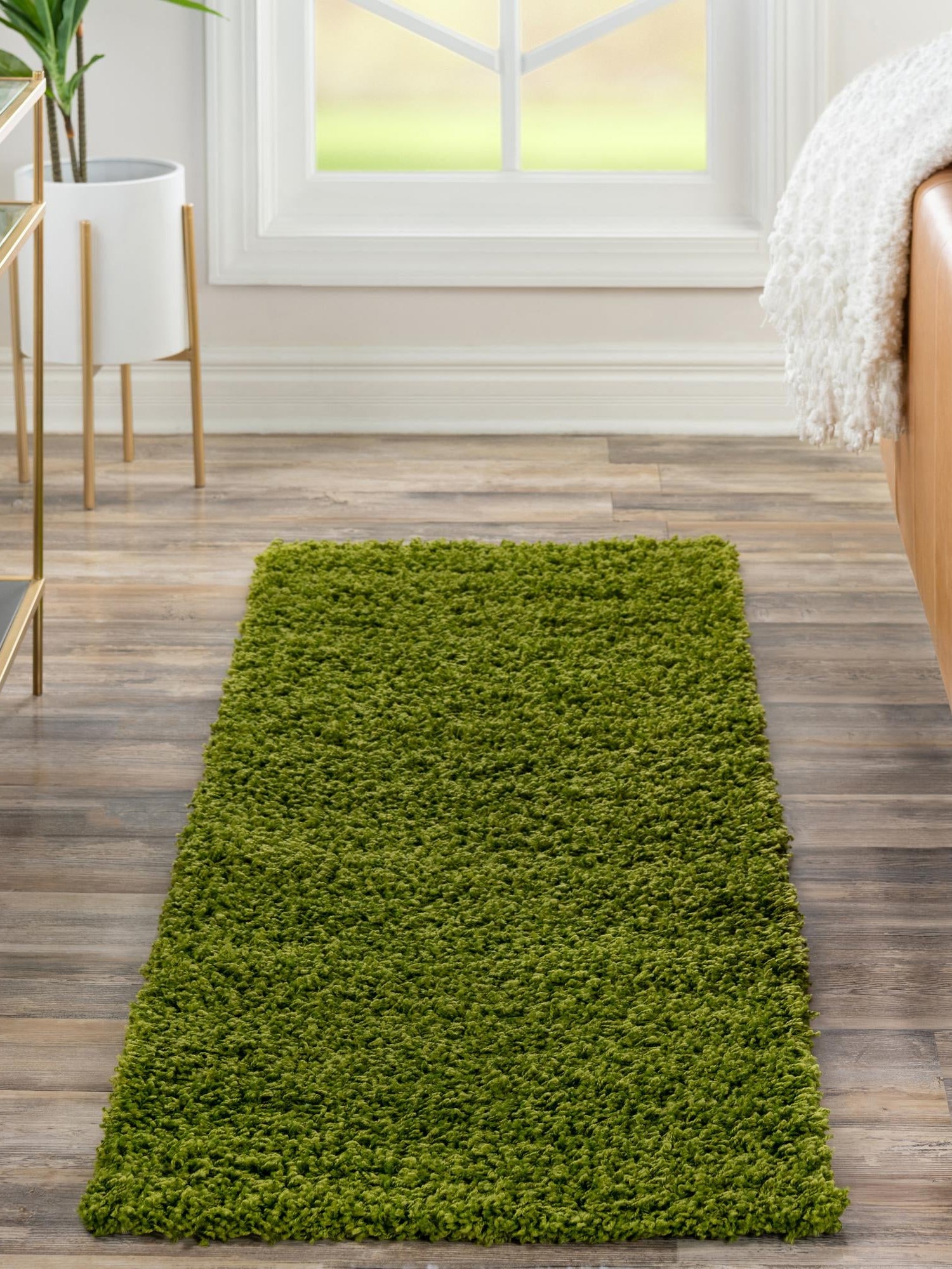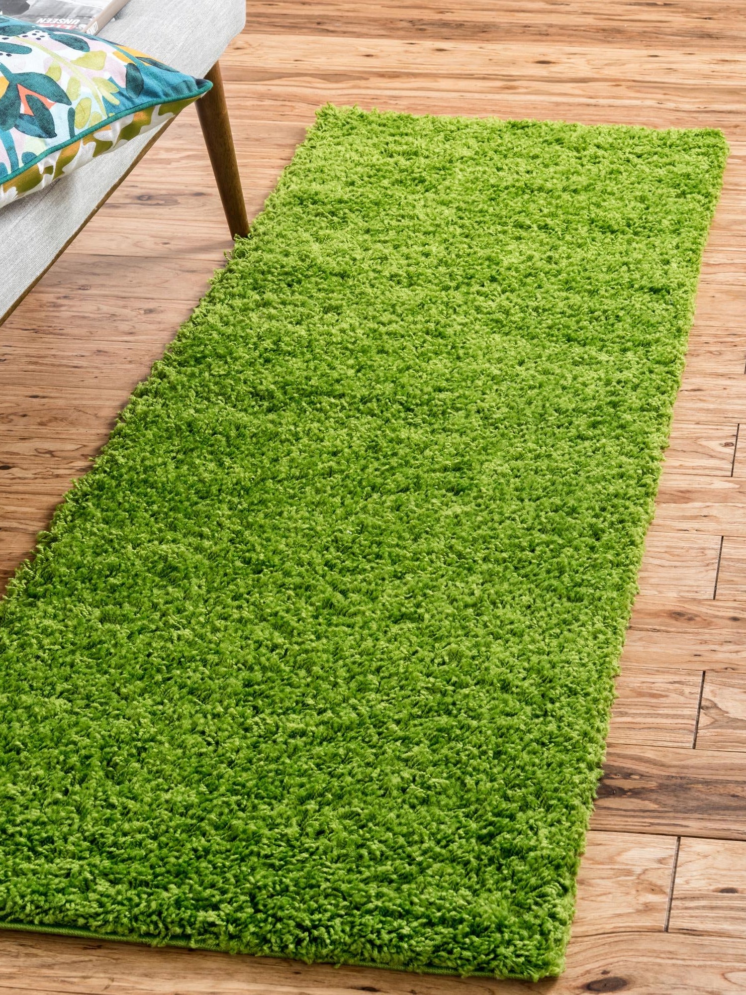 Grass Green 2' 7 x 13' 1 Solid Shag Runner Area Rug Thick S...