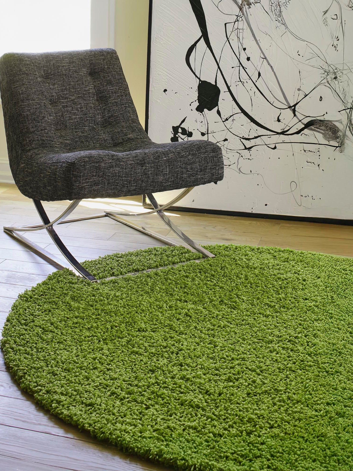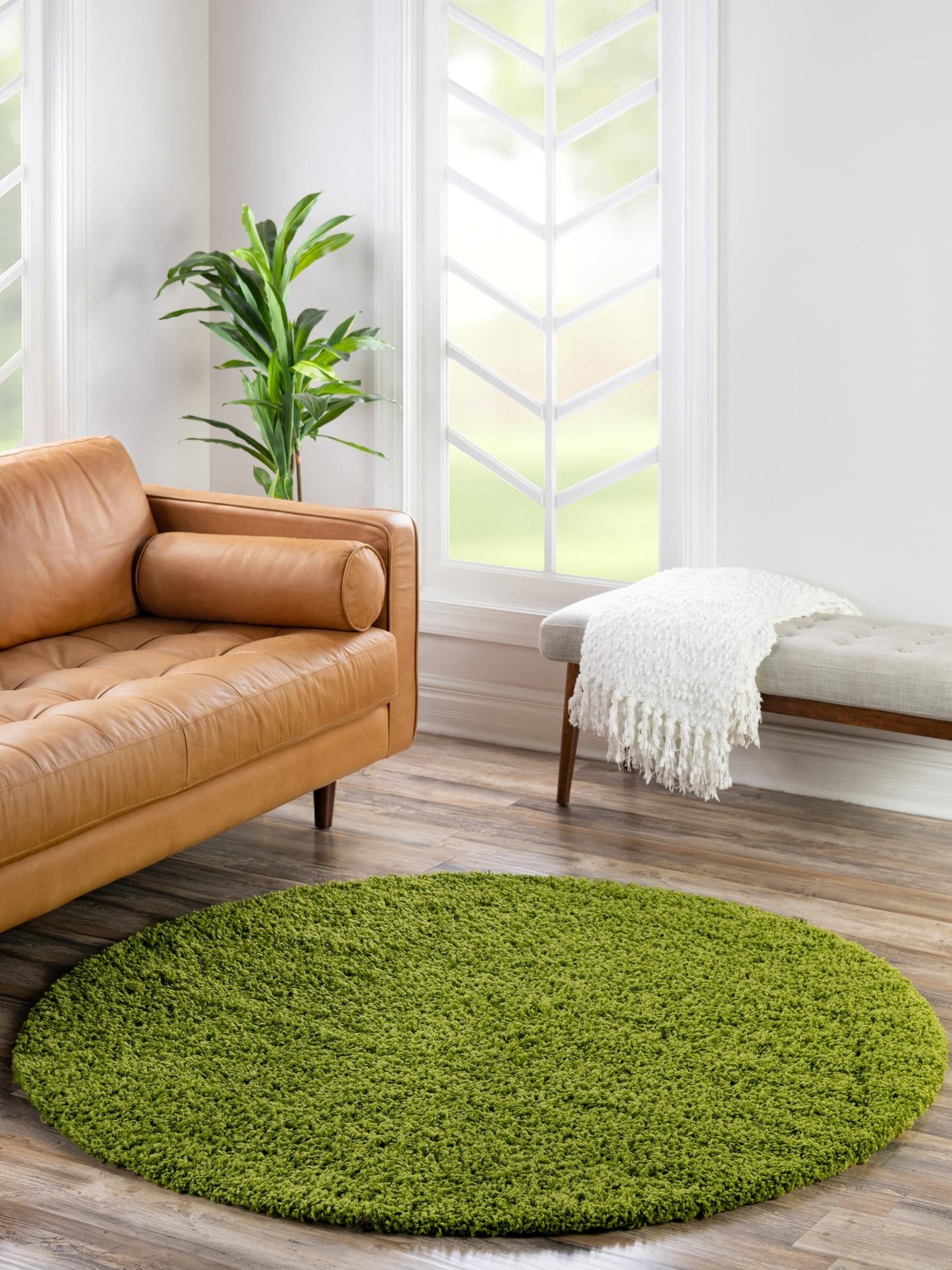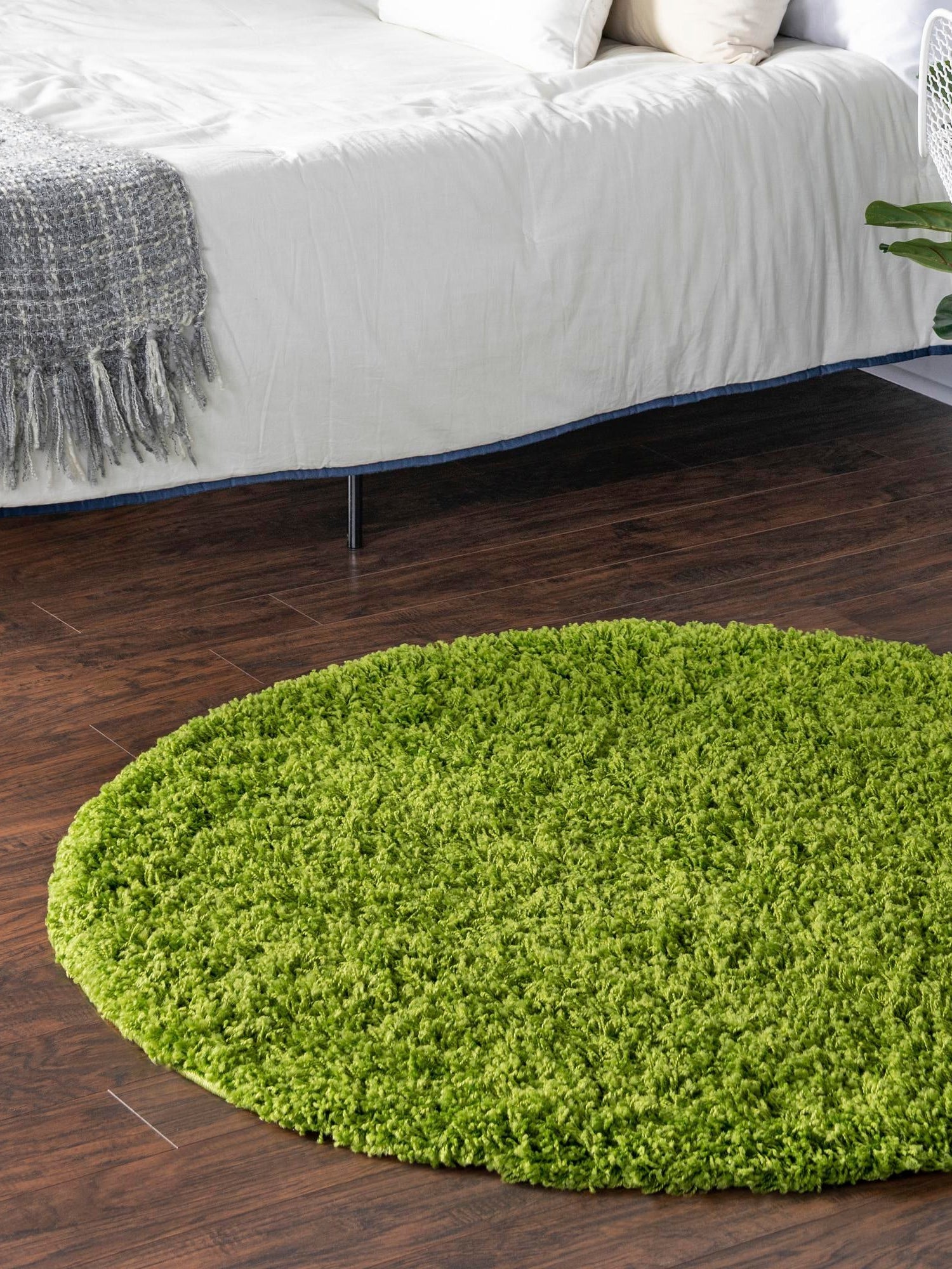 Grass Green 7' 10 x 7' 10 Solid Shag Round Area Rug Thick Soft Touch Fluffy & Plush Shaggy Pile