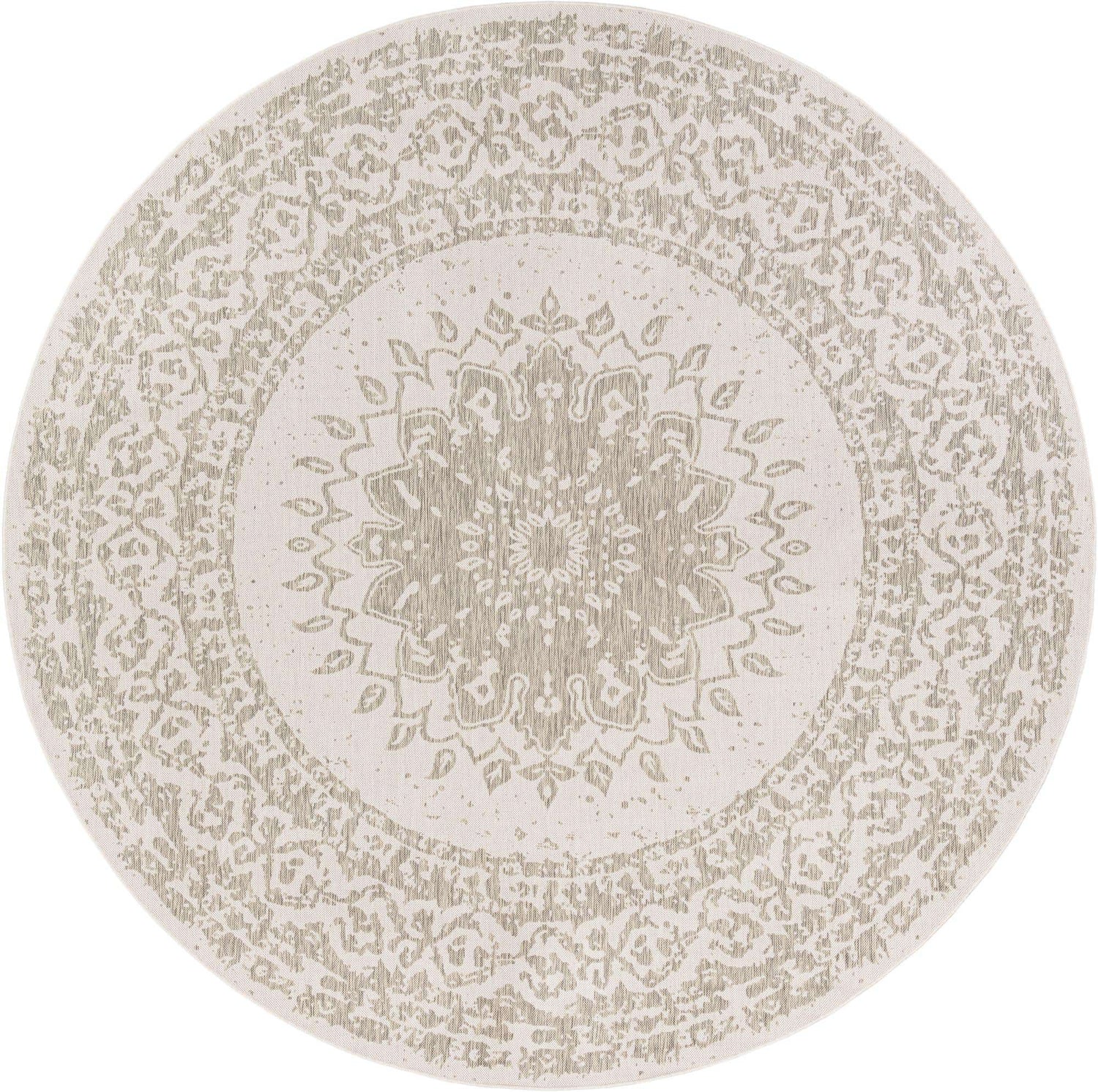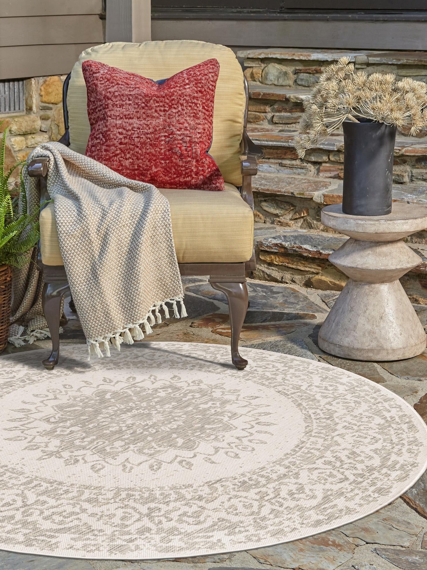 Gray 10' x 10' Outdoor Traditional Round Area Rug Weather R...