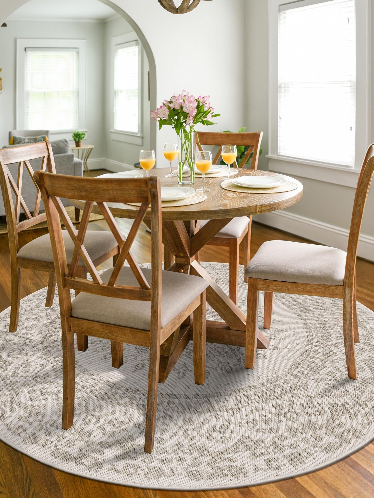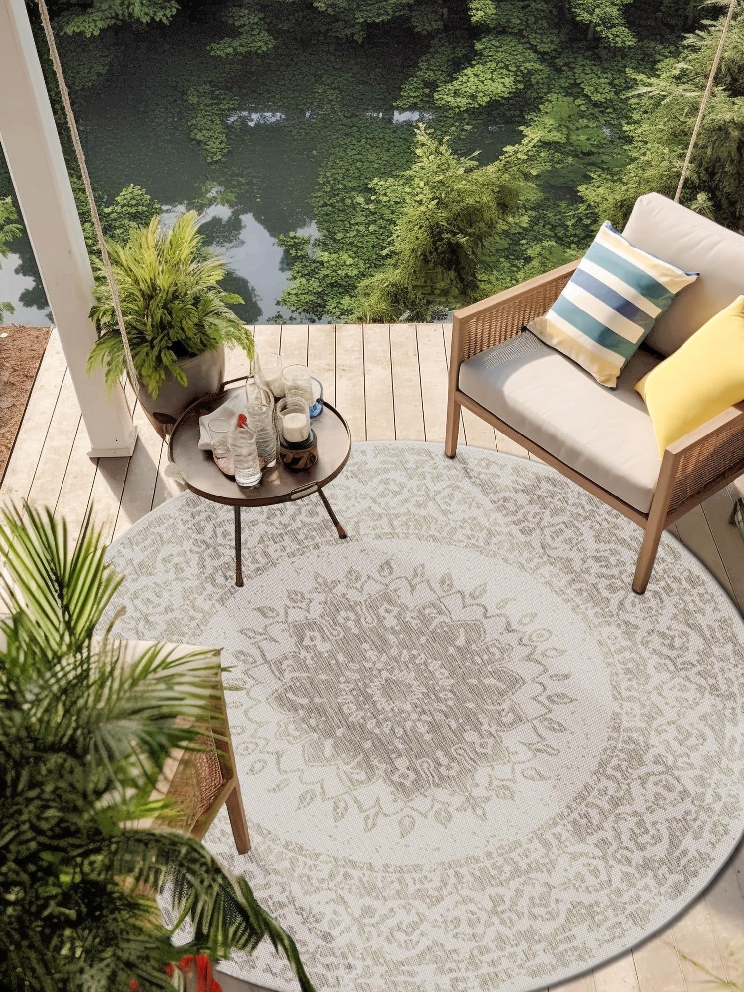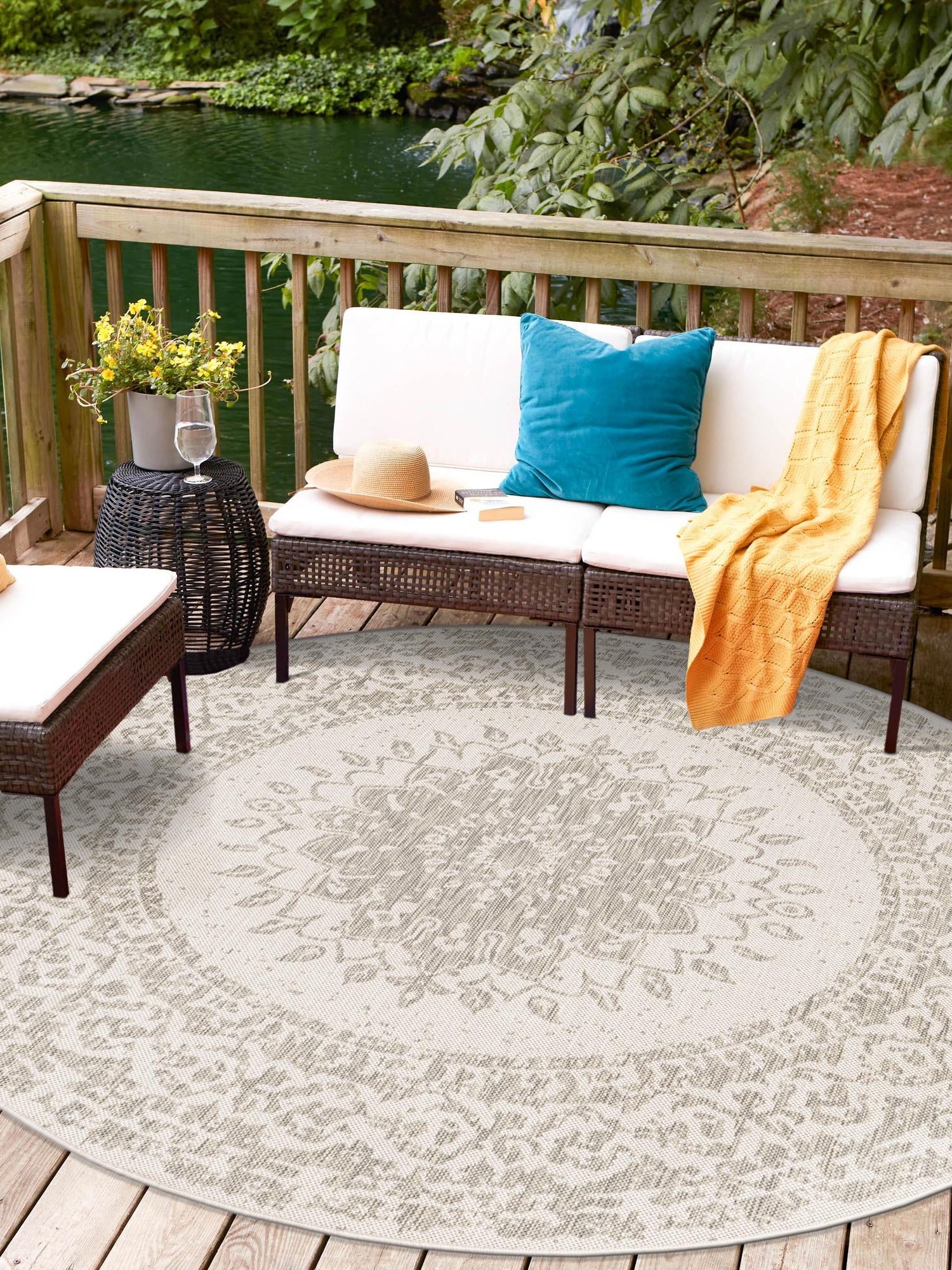 Gray 10' x 10' Outdoor Traditional Round Area Rug Weather Resistant for Patio, Deck, Terrace, Balcony, Porch