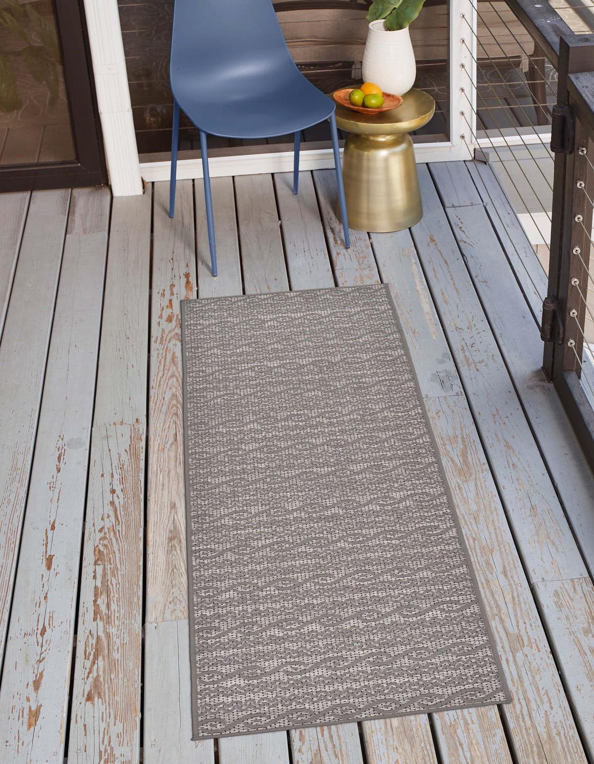 Gray 2' 2 x 6' 1 Outdoor Modern Runner Area Rug Weather Resistant for Patio, Deck, Terrace, Balcony, Porch