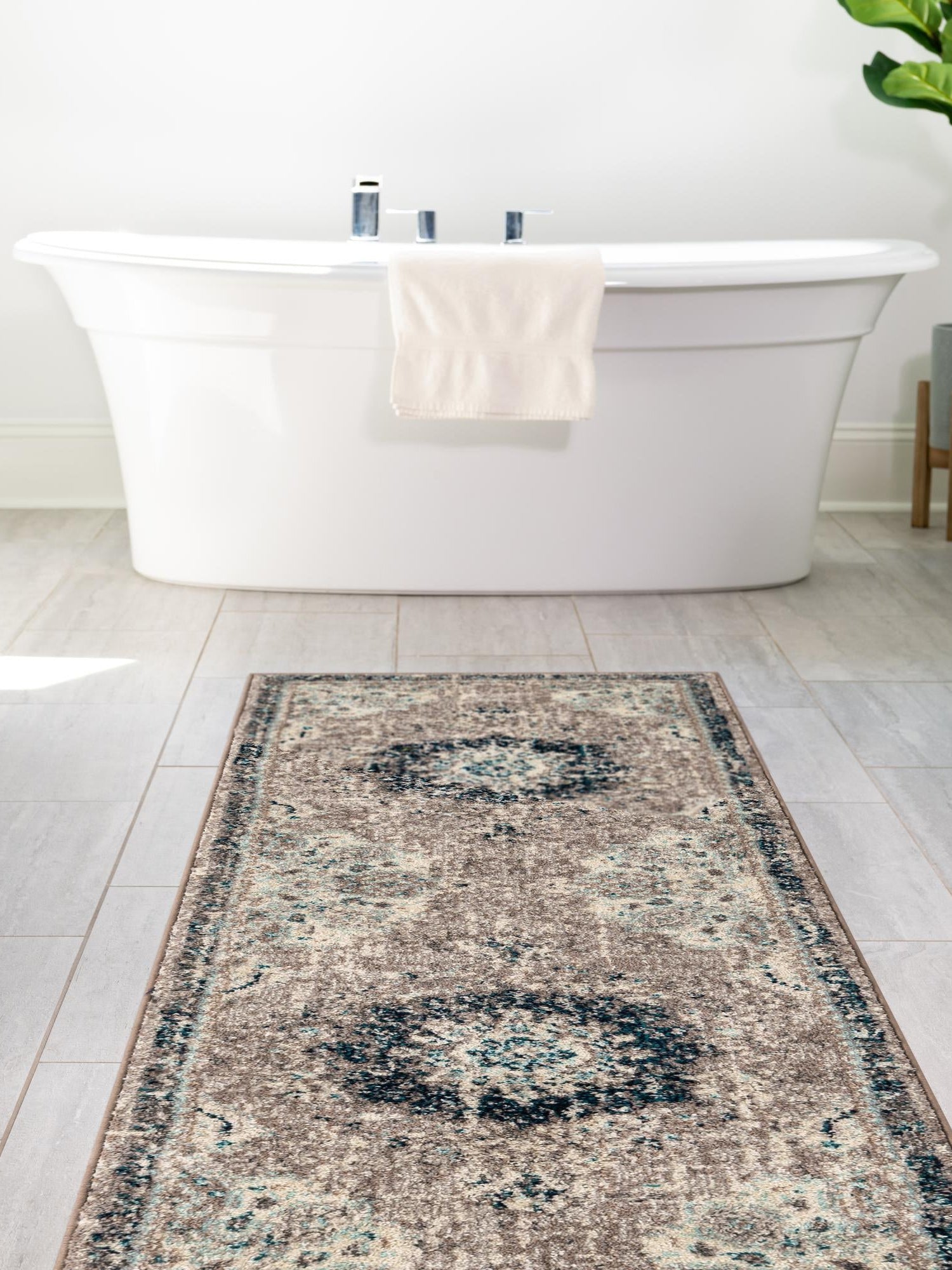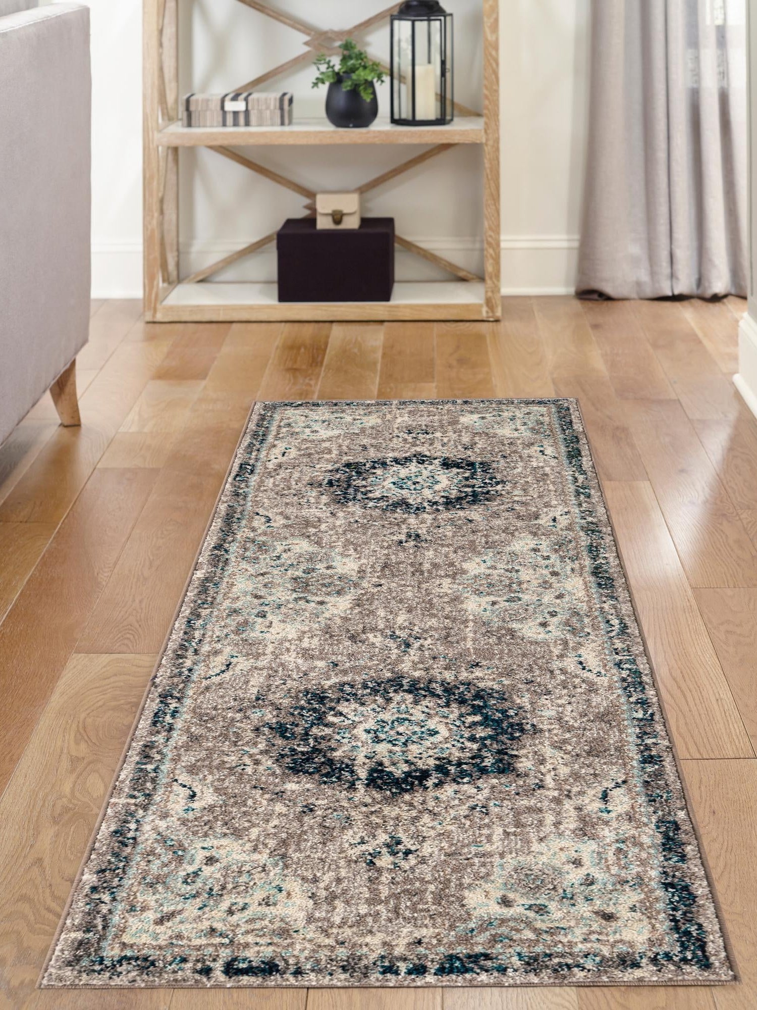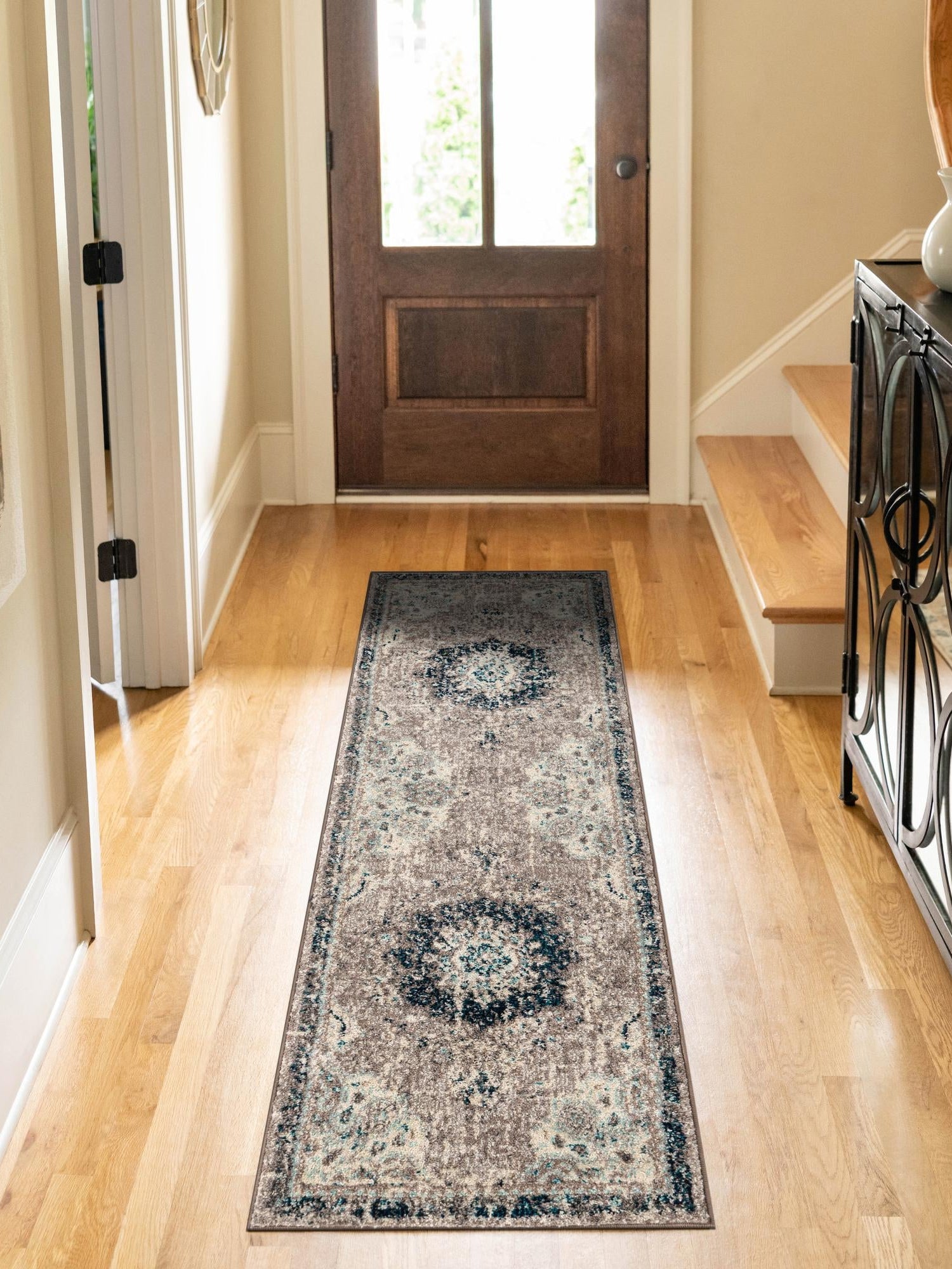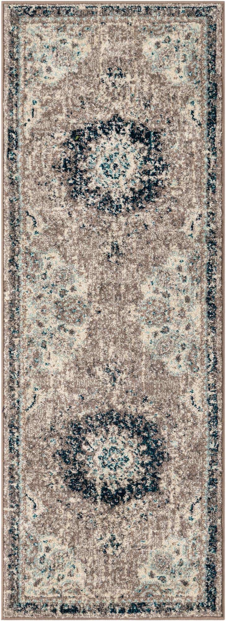 Washable Gray Blue 2' x 7' 1 Renaissance Runner Area Rug Easy to Clean Stain Resistant & Durable