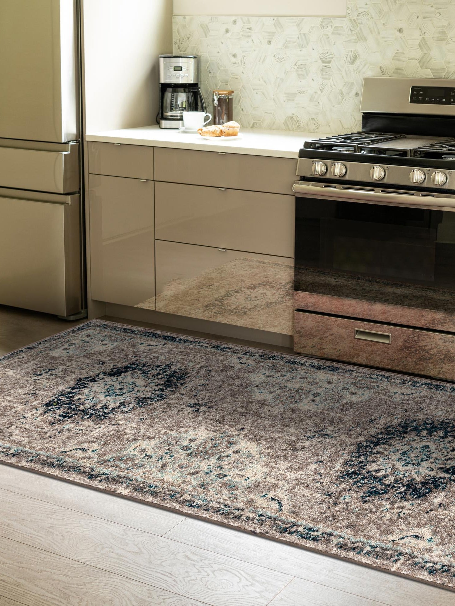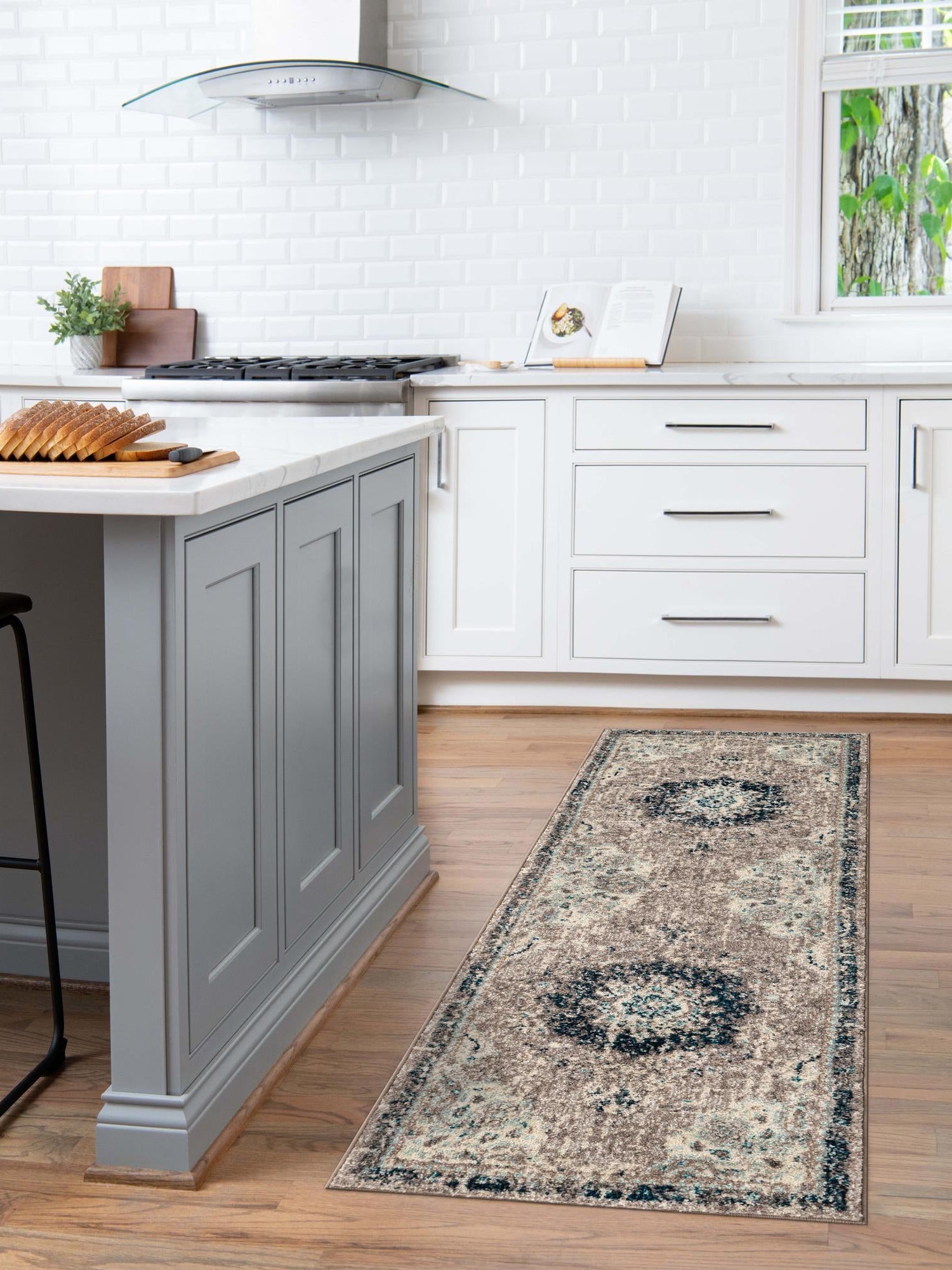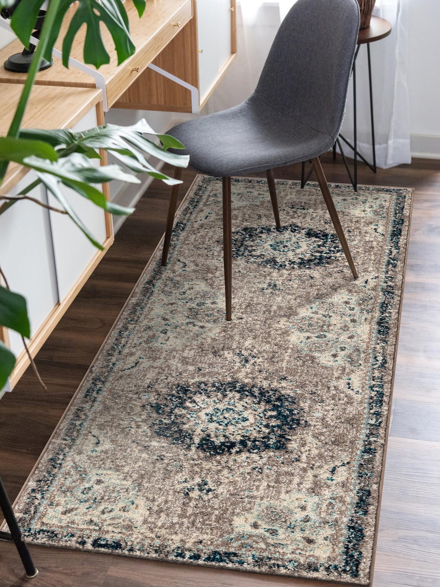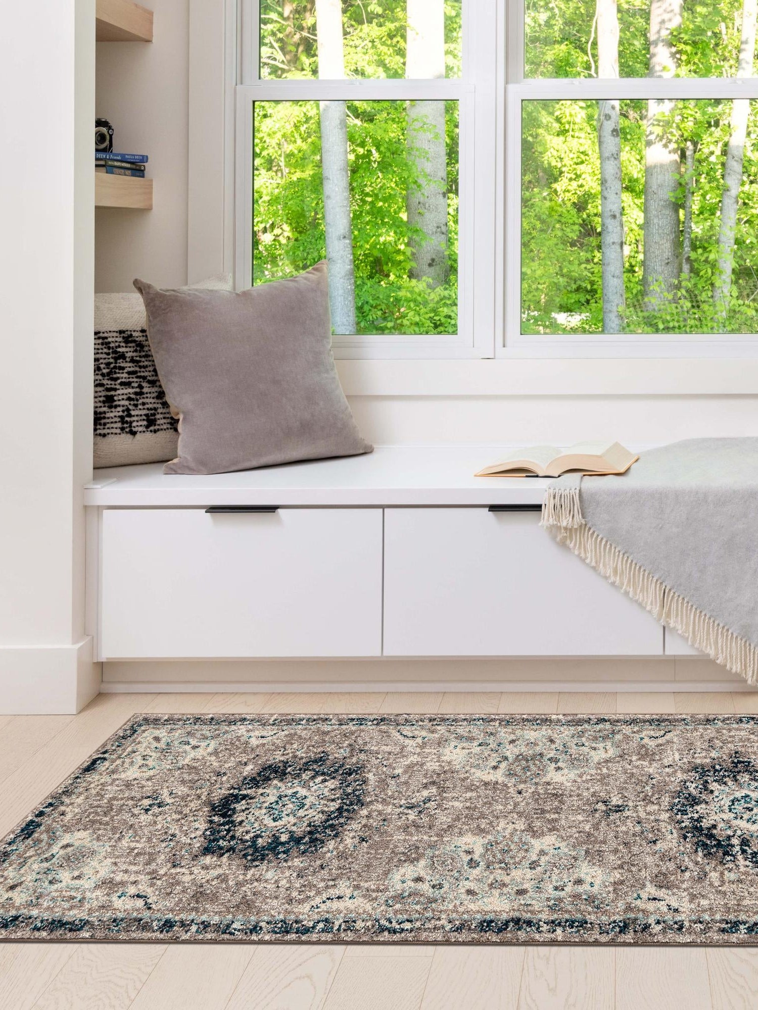 Washable Gray Blue 2' x 7' 1 Renaissance Runner Area Rug Easy to Clean Stain Resistant & Durable