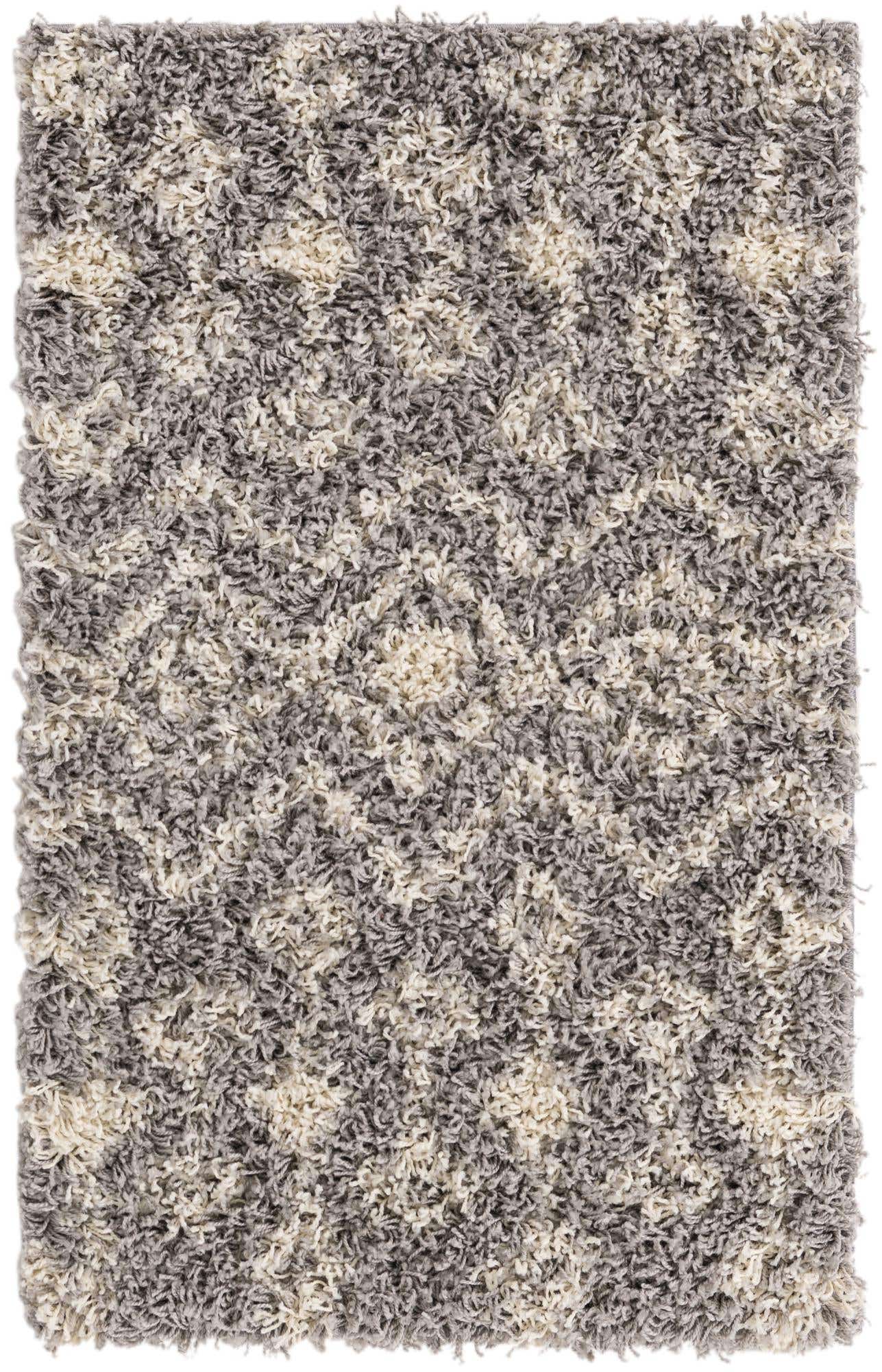 Gray 2' x 3' 1 Moroccan Trellis Shag Rectangle Area Rug Thick Soft Touch Fluffy & Plush Shaggy Pile