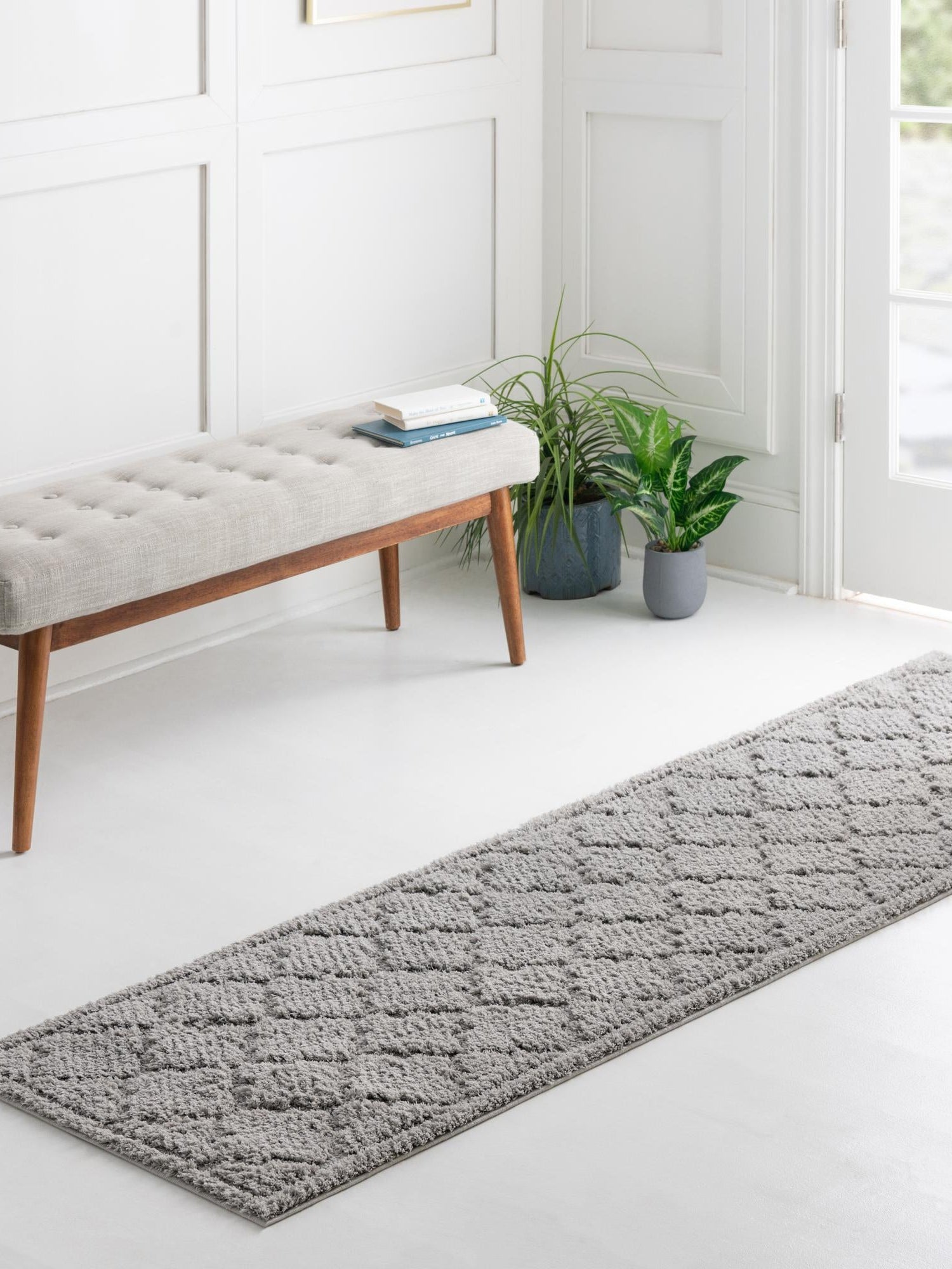 Gray 2' x 6' 7 Trellis Shag Runner Area Rug Thick Soft Touc...