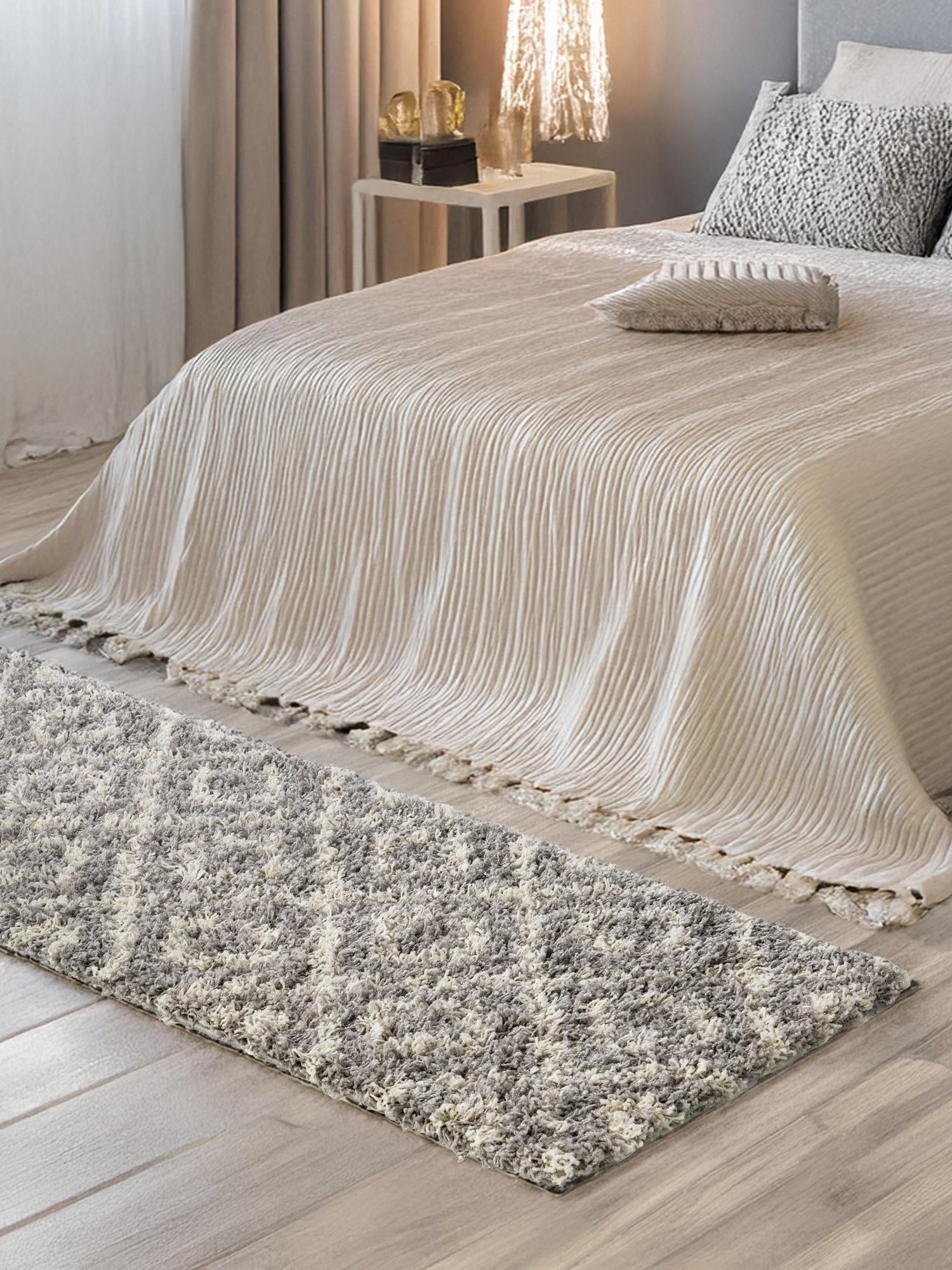 Gray 2' x 8' Trellis Shag Runner Area Rug Thick Soft Touch Fluffy & Plush Shaggy Pile
