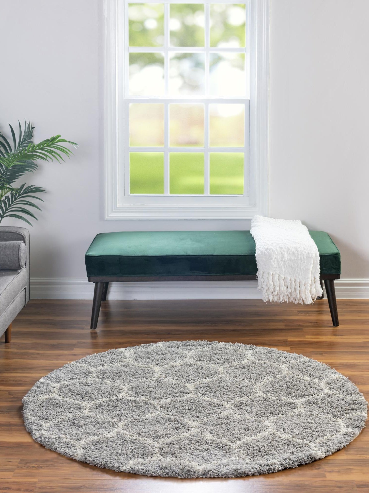 Gray 3' 3 x 3' 3 Trellis Shag Round Area Rug Thick Soft Tou...