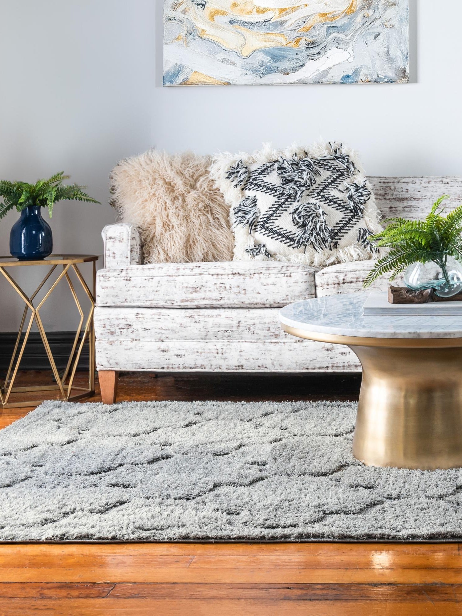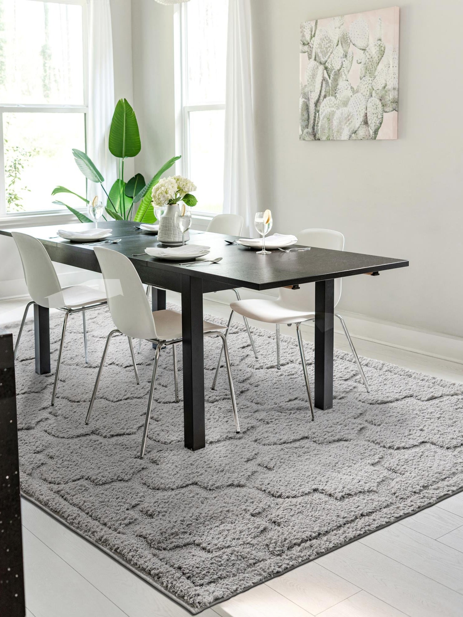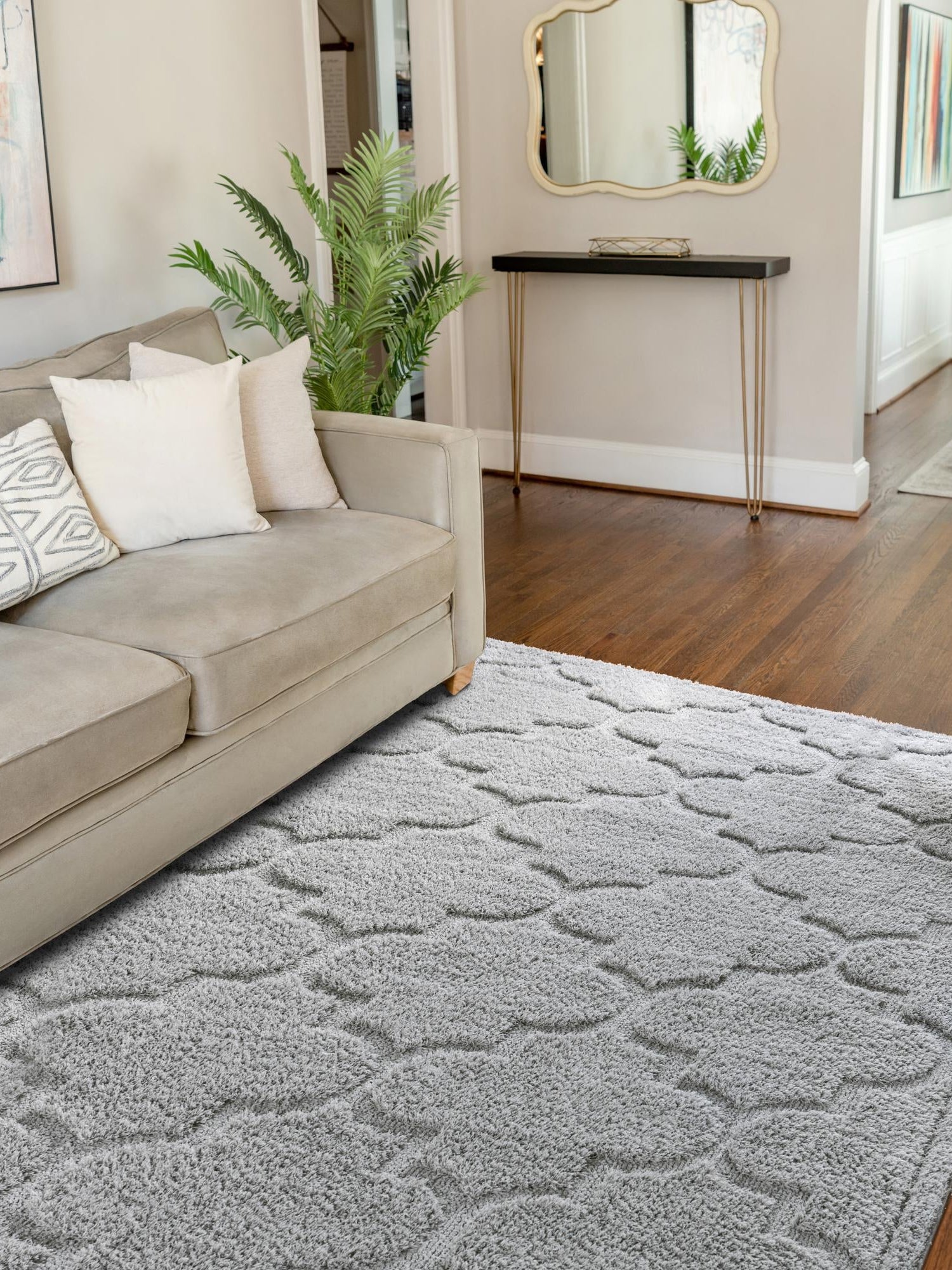 - Distinct Geometric Appeal: Featuring a unique geometric pattern, this rug adds a touch of modern design to your space while keeping it stylish and trendy. The trellis shag collection stands out with its contemporary look, making it an eye-catching centerpiece in any room. Transform your home with a piece that combines artistic flair with everyday practicality.