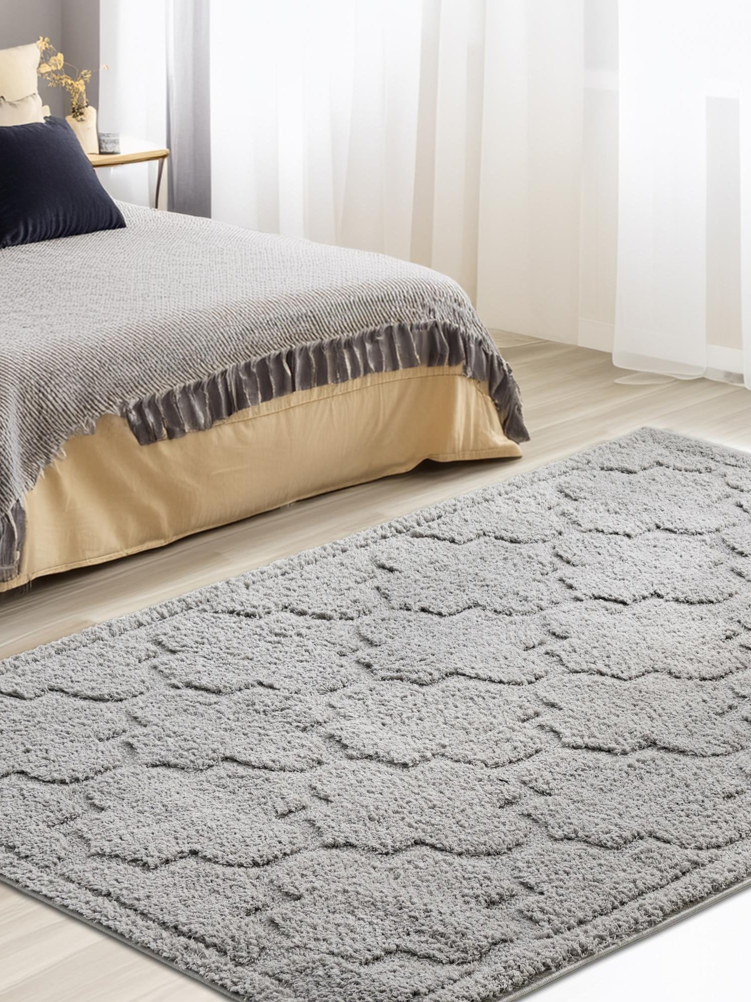 Gray 4' 1 x 6' 1 Trellis Shag Rectangle Area Rug Thick Soft Touch Fluffy & Plush Shaggy Pile