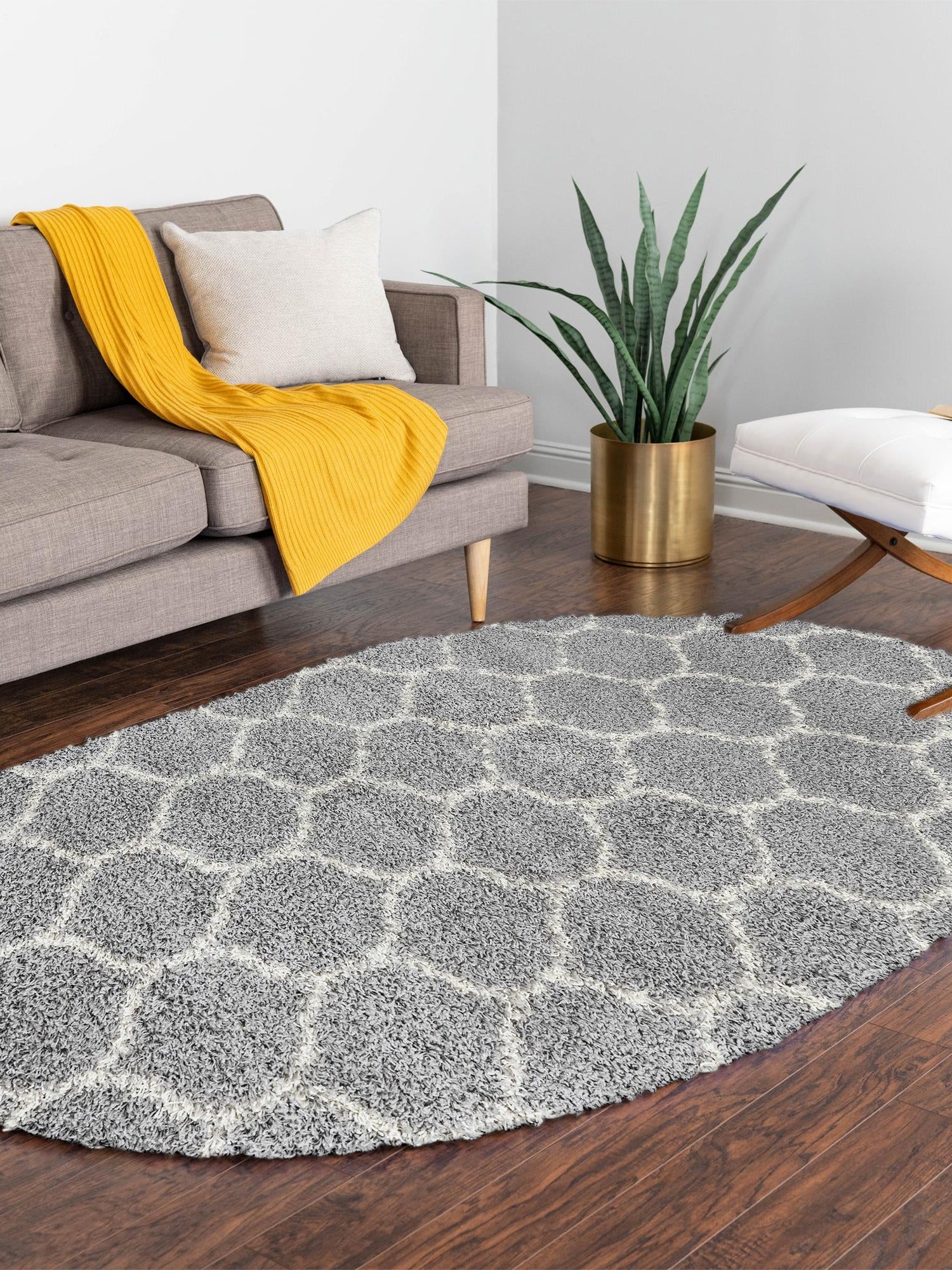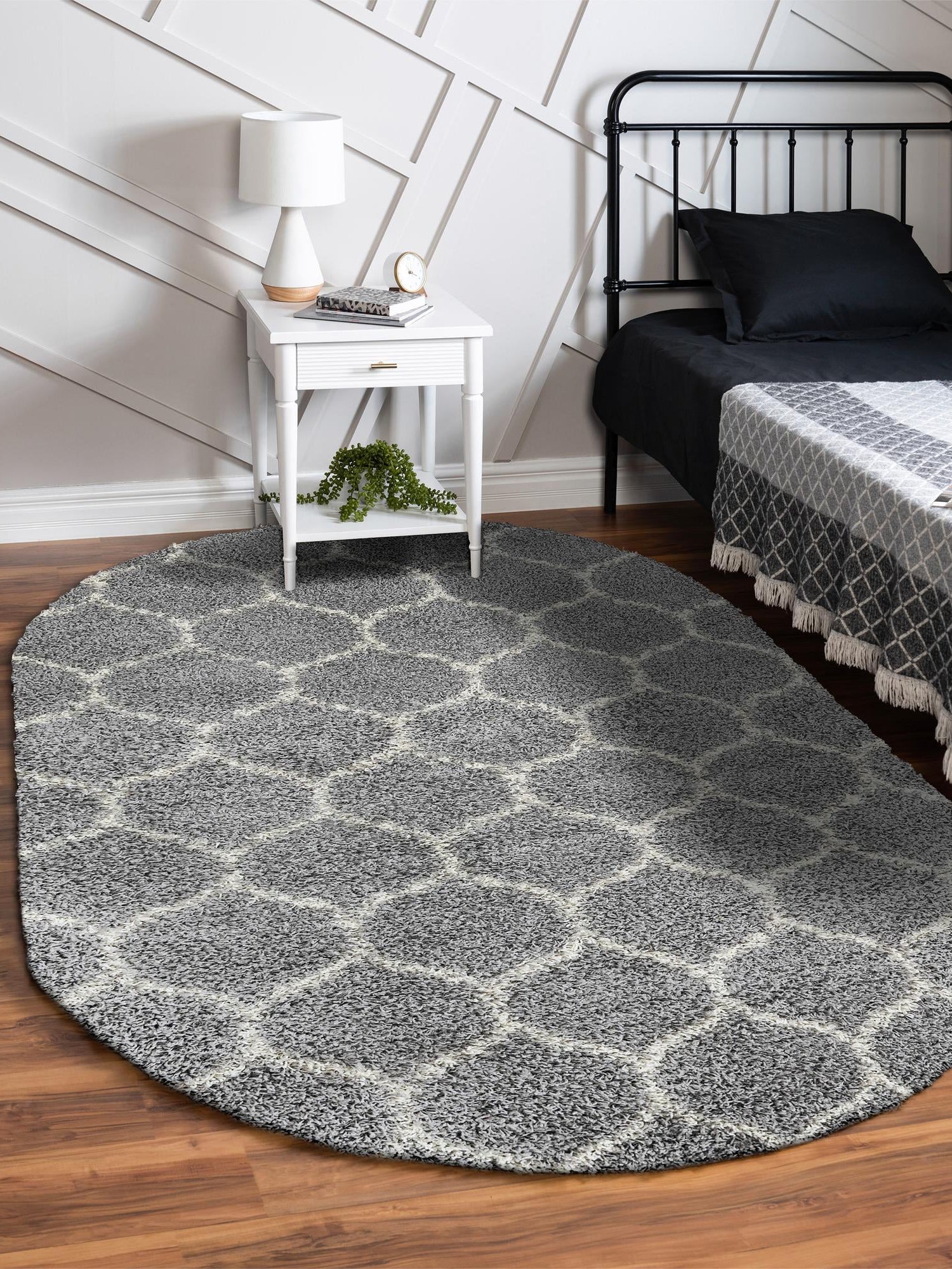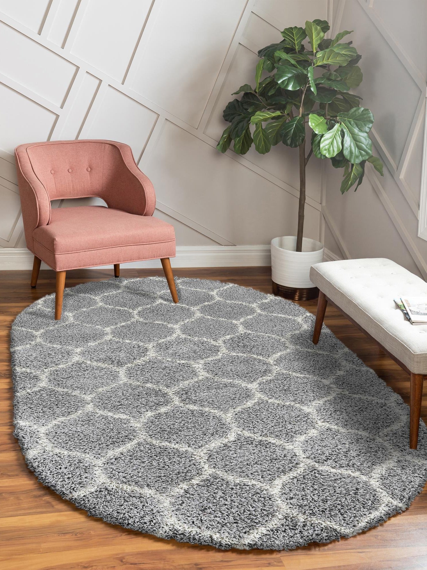 Gray 4' x 6' Trellis Shag Oval Area Rug Thick Soft Touch Fluffy & Plush Shaggy Pile