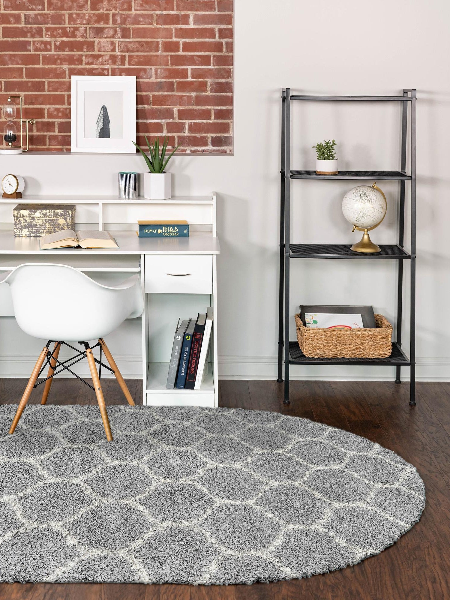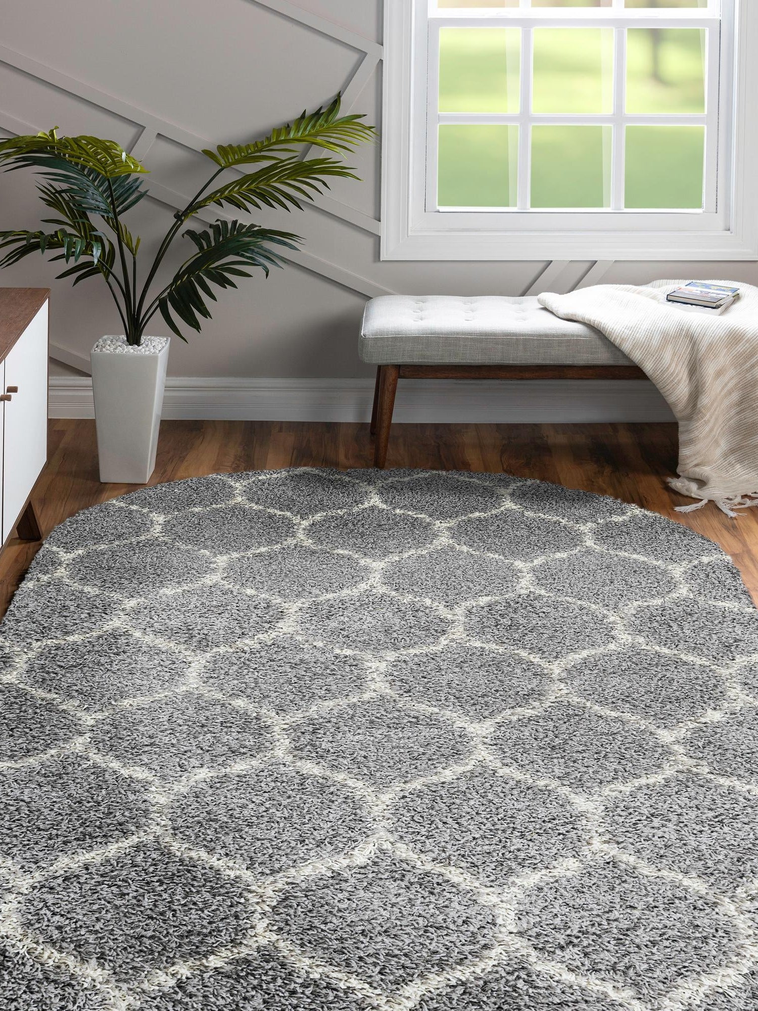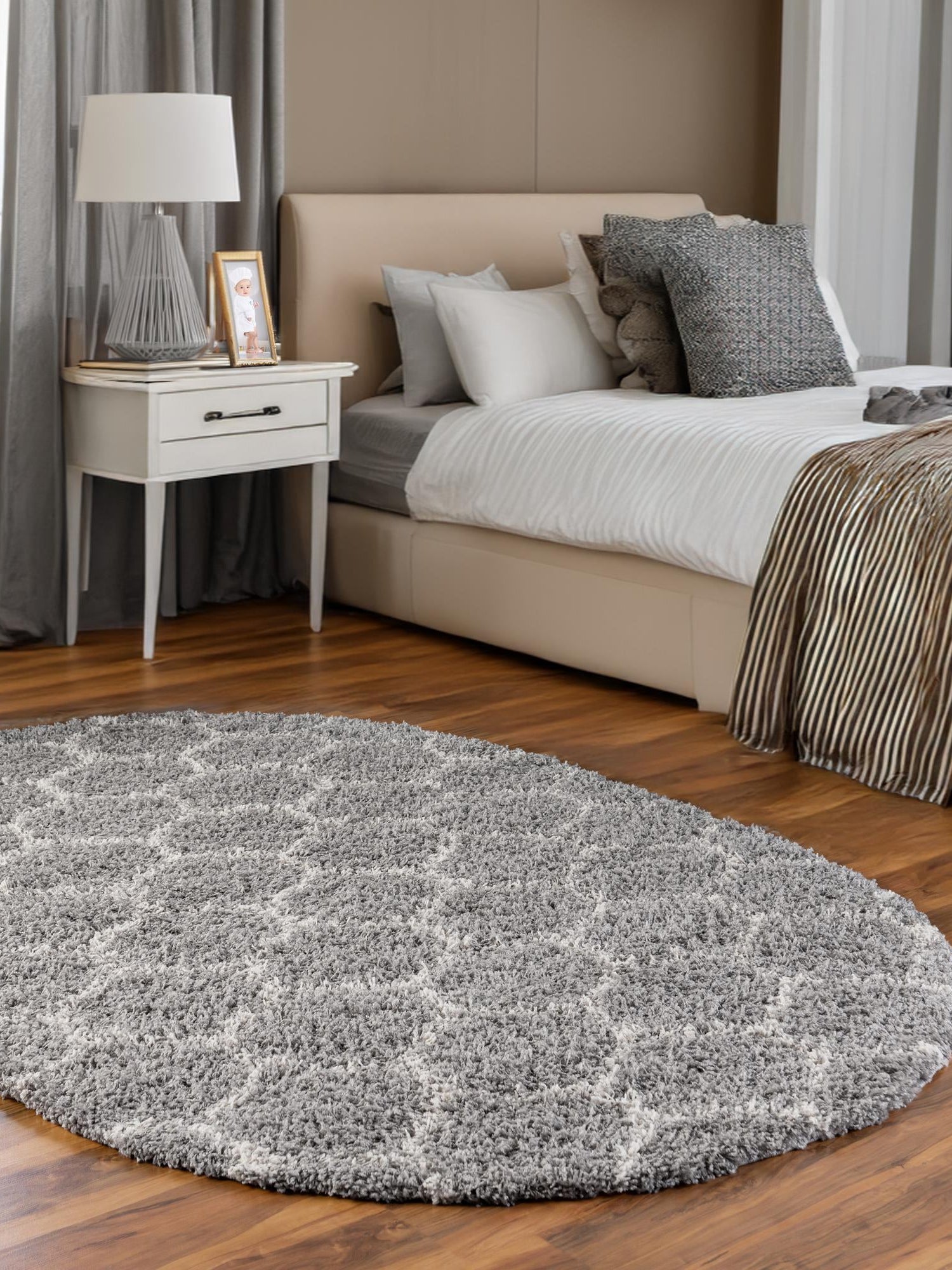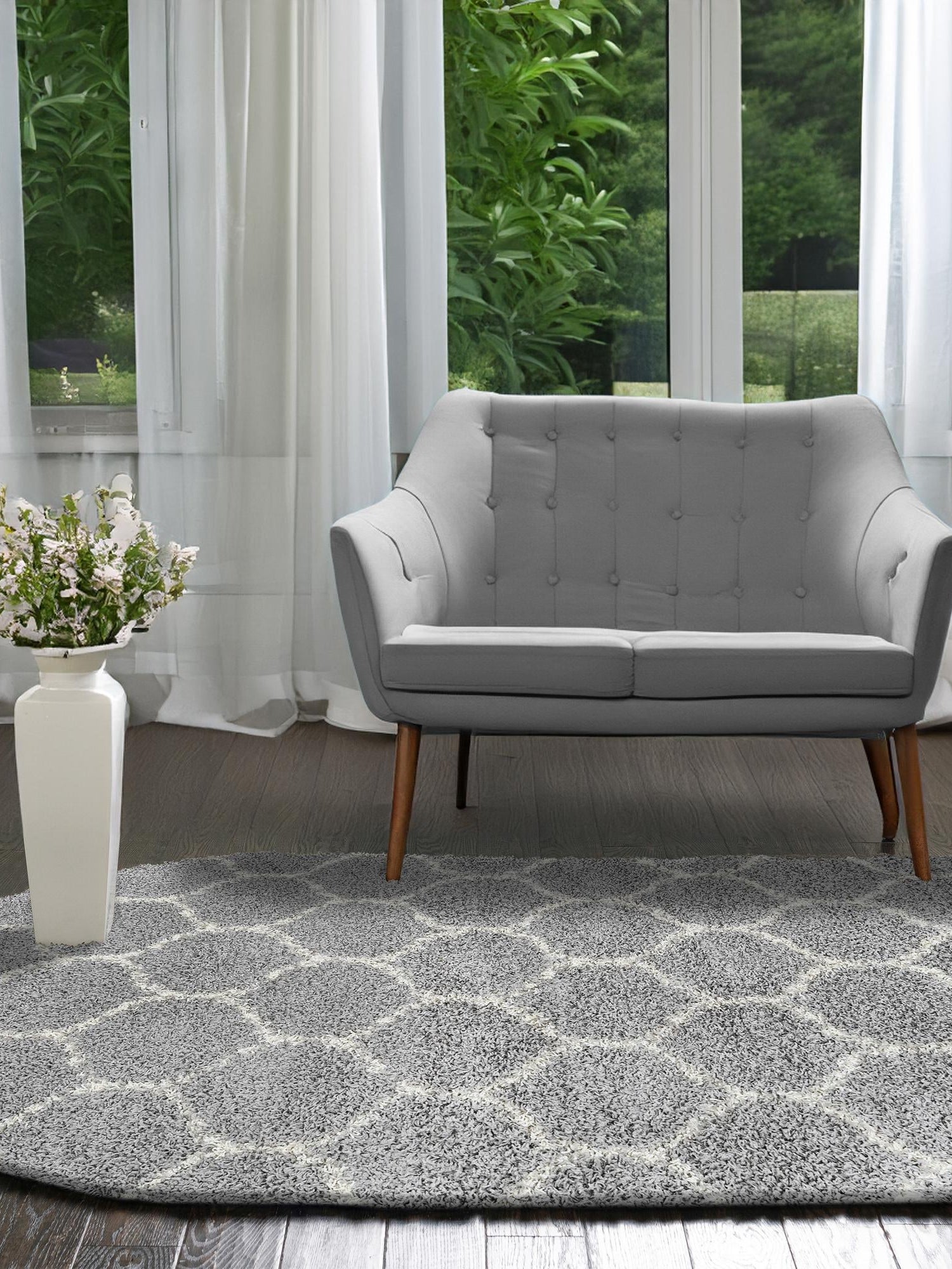 Gray 4' x 6' Trellis Shag Oval Area Rug Thick Soft Touch Fluffy & Plush Shaggy Pile