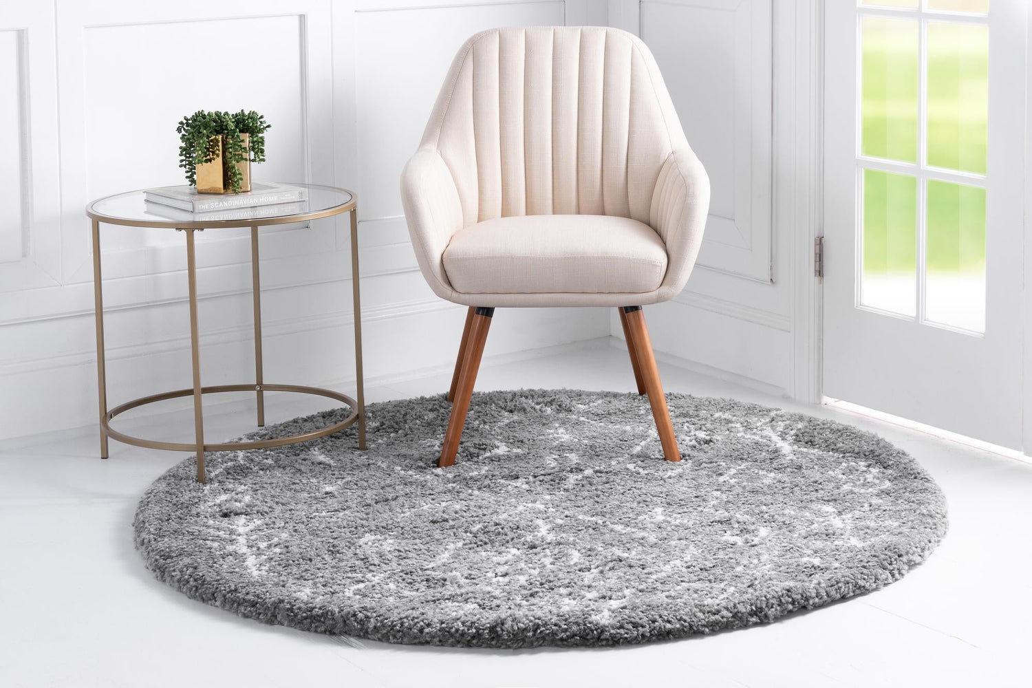Gray 5' 3 x 5' 3 Rabat Shag Round Area Rug Thick Soft Touch Fluffy & Plush Shaggy Pile